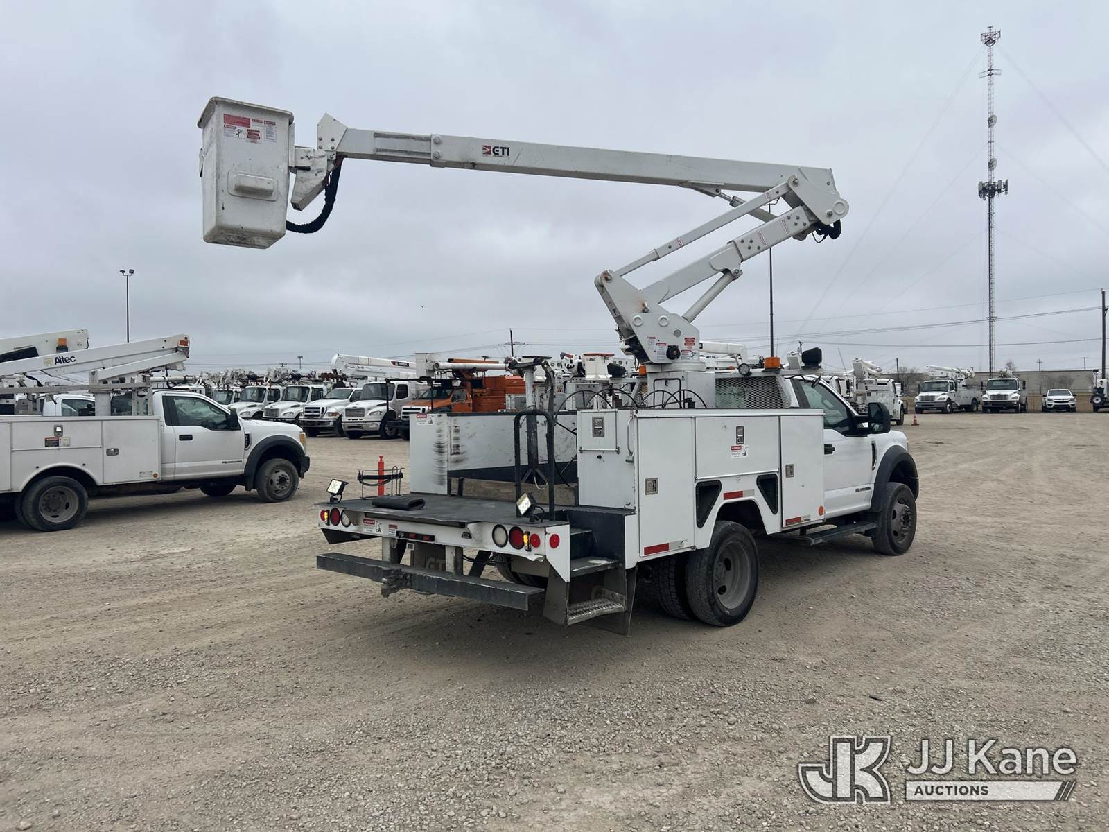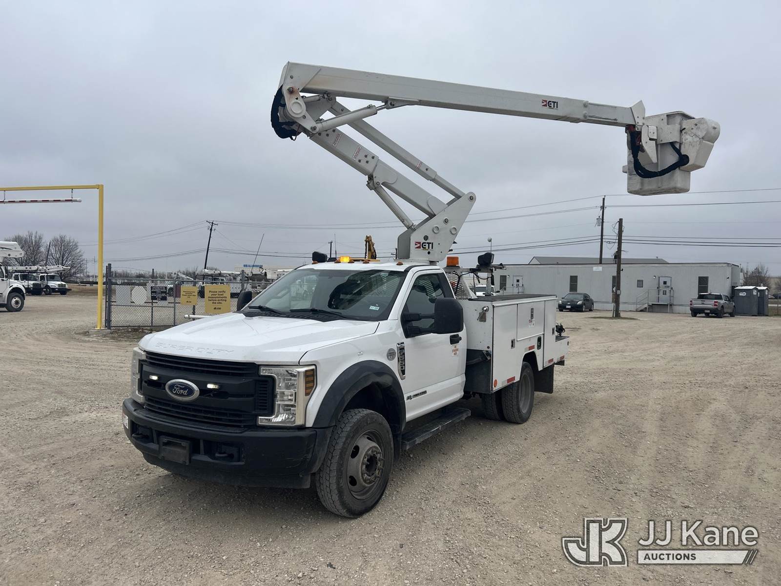 ETI ETC37-IH, 42 ft, Articulating & Telescopic Bucket s/n 0219C715532, with single man bucket, mounted behind cab on 2019 Ford F550 Service Truck, 6.7L diesel, Auto, A/C, (263,736 miles) (Runs, Moves & Upper Operates) (Check Engine Light, Cracked Windshield) (Reads 16,820 hours) This is a Titled Item NOTE: This unit is being sold AS IS/WHERE IS via Timed Auction and is located in Waxahachie, TX. Inspection & preview days for this unit are the 2 business days prior to the first day of items closing for this auction, item is located at 999 Solon Rd Waxahachie, TX 75165 and hours of operations are 8a-4p. For pre-sale questions, please contact Alex Bayless @ (469) 550-4938. (Missing manuals, See Auction Company for Manufacturers Information to obtain manuals) (Buyer is responsible for removal. Assistance by consignor or JJ Kane Auctions is not assured.)