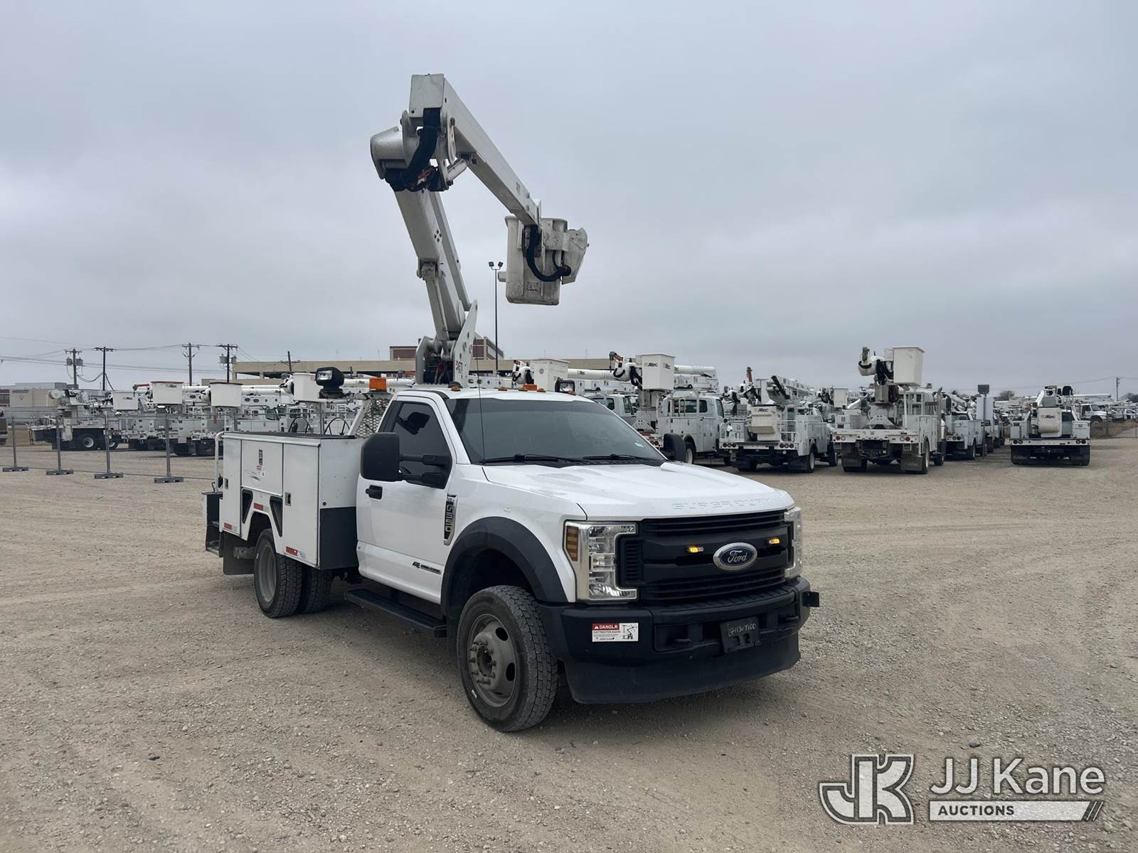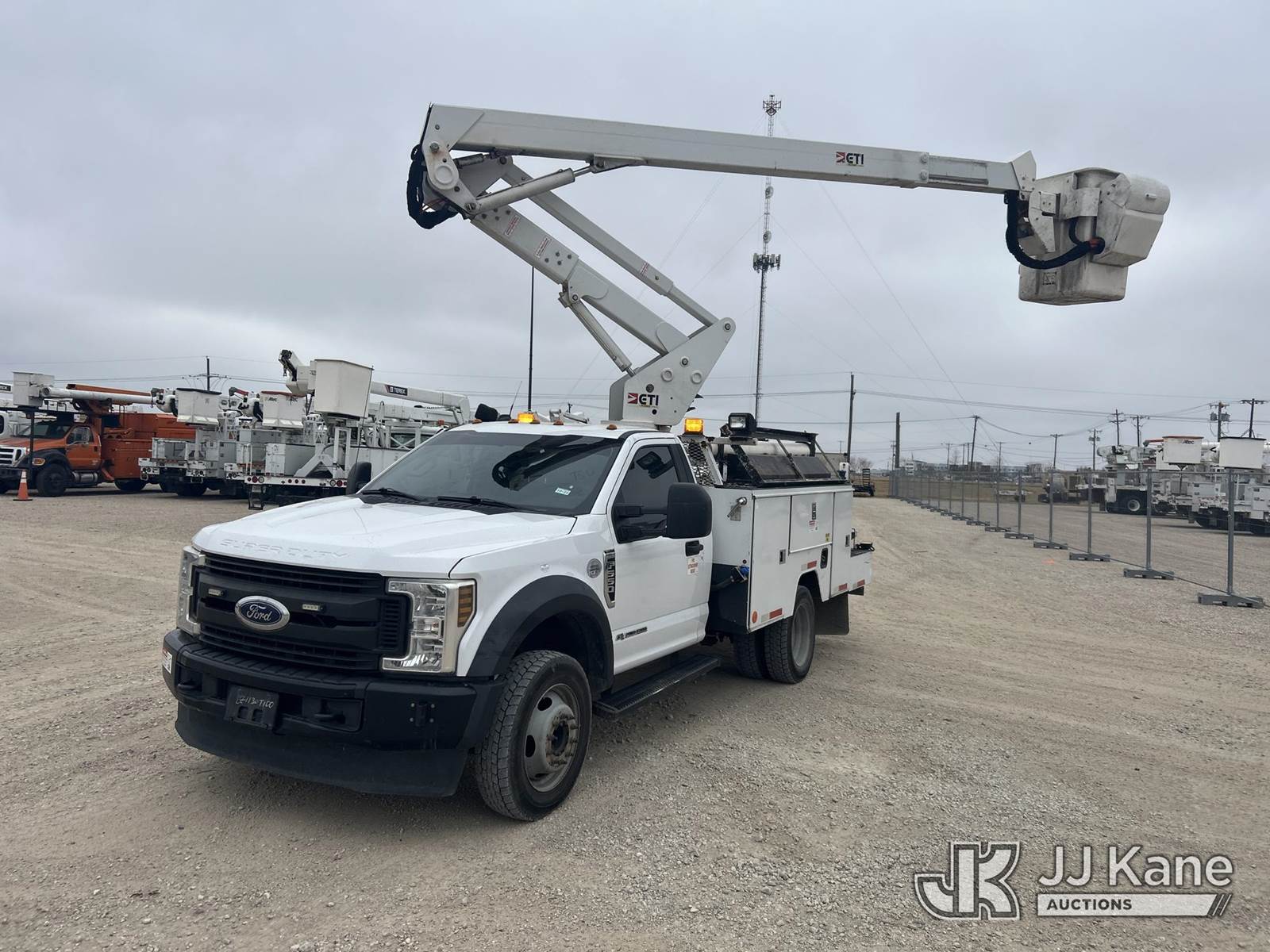 ETI ETC37-IH, 42 ft, Articulating & Telescopic Bucket s/n 0219C715531, with single-man bucket, mounted behind cab on 2019 Ford F-550 Service Truck, 6.7L V8 OHV 16V diesel, RWD, Auto, A/C, (183,084 miles) (Runs & Moves, Upper Operates) (Check Engine Light On) (Reads 15,171 hours) This is a Titled Item NOTE: This unit is being sold AS IS/WHERE IS via Timed Auction and is located in Waxahachie, TX. Inspection & preview days for this unit are the 2 business days prior to the first day of items closing for this auction, item is located at 999 Solon Rd Waxahachie, TX 75165 and hours of operations are 8a-4p. For pre-sale questions, please contact Alex Bayless @ (469) 550-4938. (Missing manuals, See Auction Company for Manufacturers Information to obtain manuals) (Buyer is responsible for removal. Assistance by consignor or JJ Kane Auctions is not assured.)