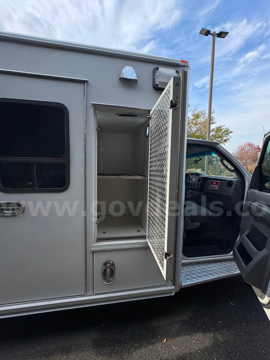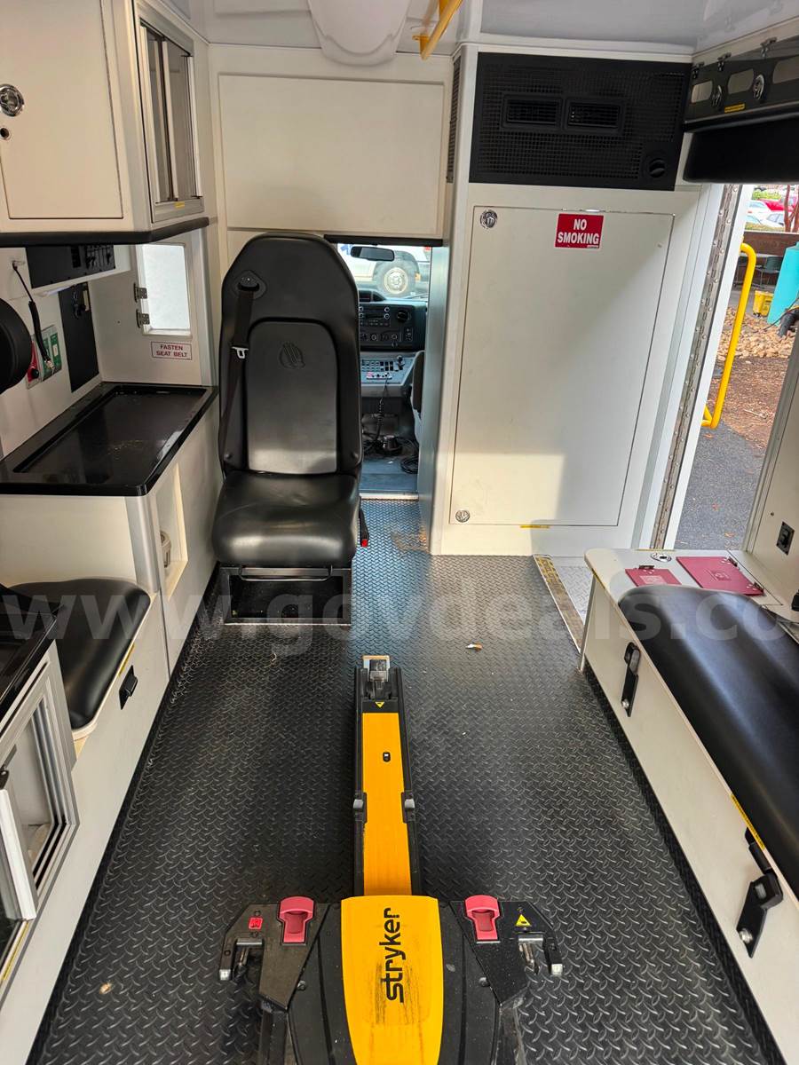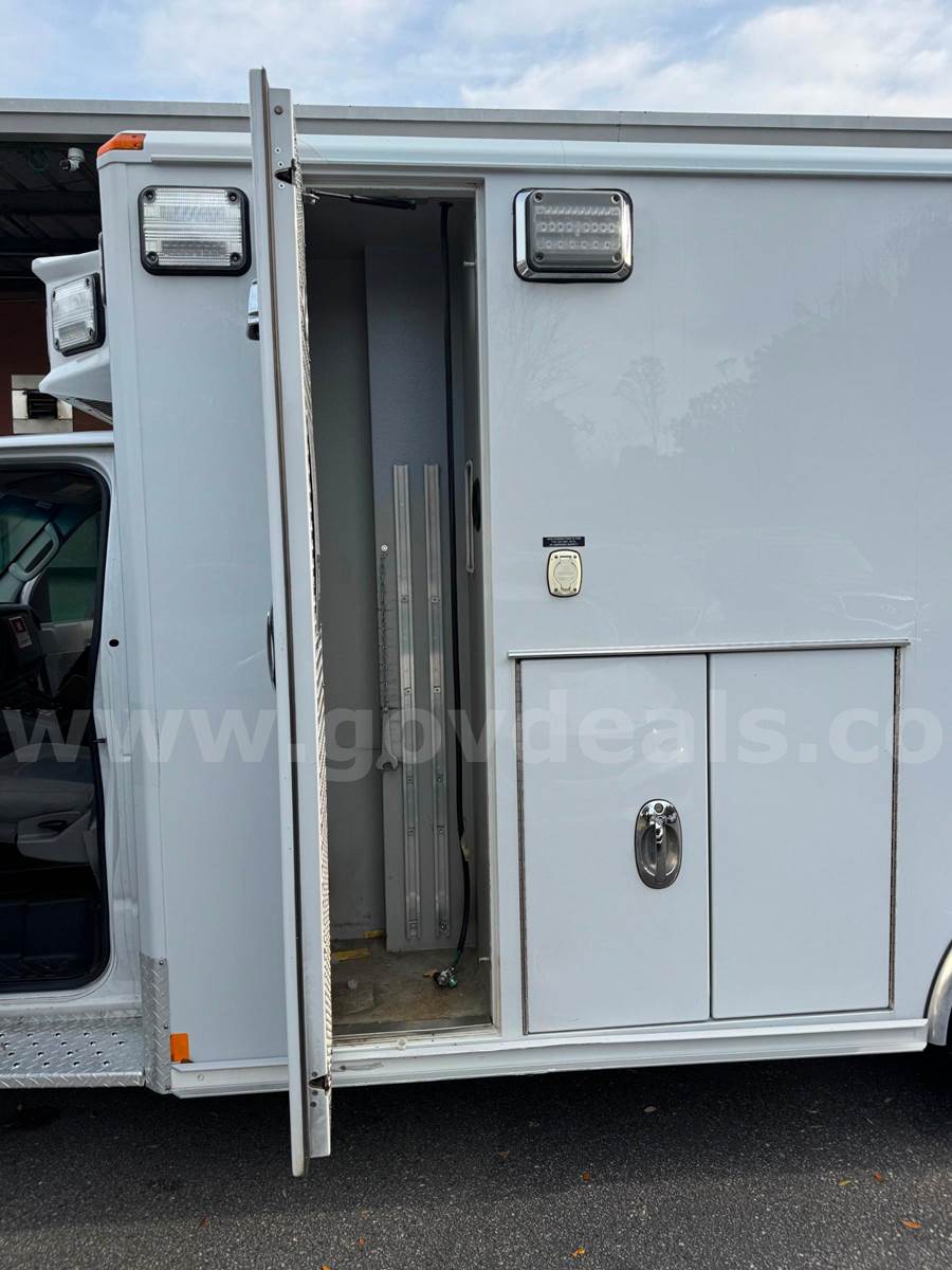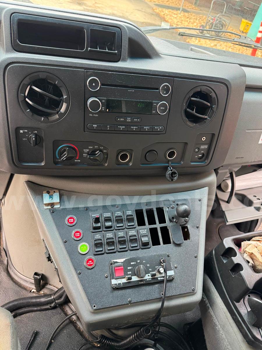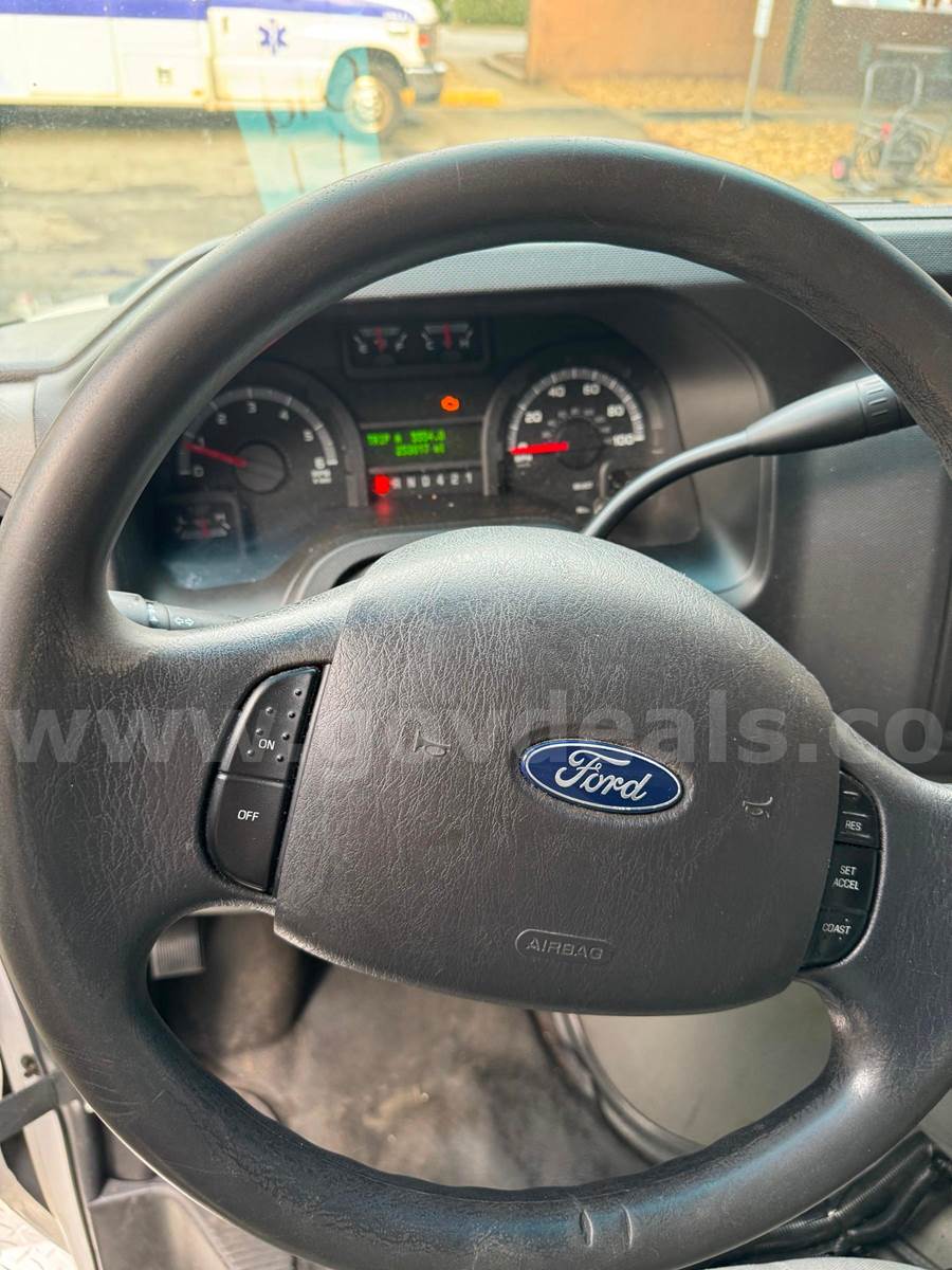 2019 Ford Econoline CUTAWAY, 6.8L V10 SOHC 20V. This vehicle starts and runs: Automatic Transmission, with Dual Air Bags, AC, Power Steering, Windows & Door Locks. Cruise Control, Tilt Steering & Remote Mirrors. Vehicle removed from service October 2024. White with minor scratches and dings from normal use. Some scratches due to decal removal. Dents in Rear Fender. Stains / Small holes in Driver and Passenger Seats. Age-appropriate wear to seats, dash and floor. Mileage 254,649 - Vehicle offered with no warranties, Offered as Is. Vehicle was maintained every 4000 miles. Maintenance Records are available. Additional Equipment: Stryker Power load & working back-up camera