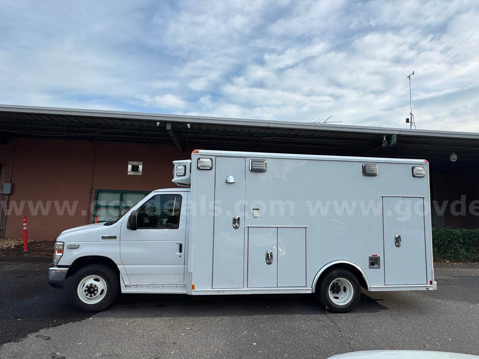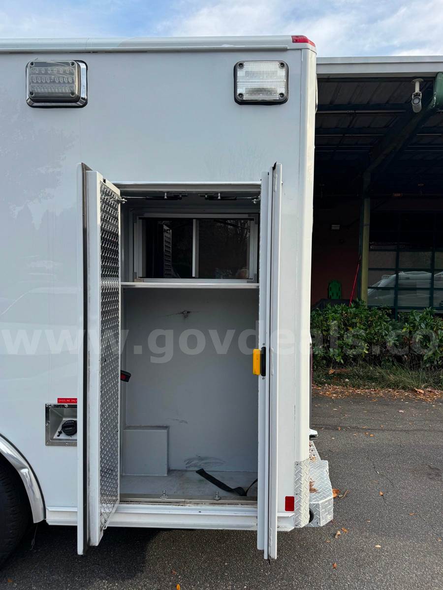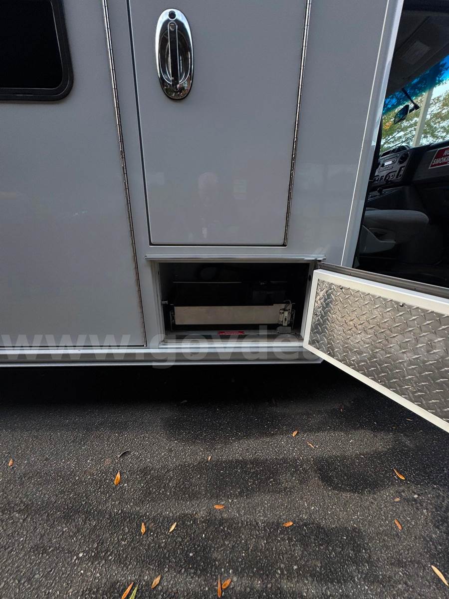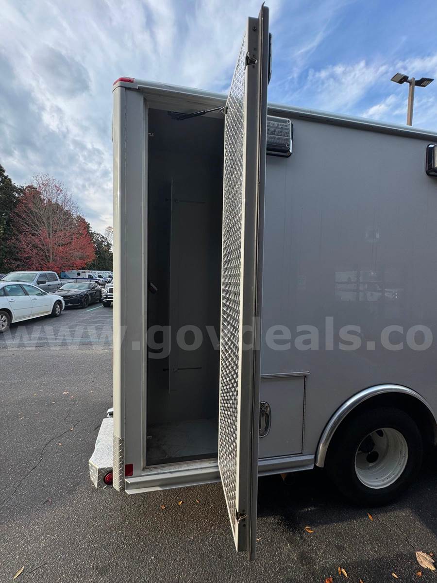2019 Ford Econoline CUTAWAY, 6.8L V10 SOHC 20V. This vehicle starts and runs: Automatic Transmission, with Dual Air Bags, AC, Power Steering, Windows & Door Locks. Cruise Control, Tilt Steering & Remote Mirrors. Vehicle removed from service October 2024. White with minor scratches and dings from normal use. Some scratches due to decal removal. Dents in Rear Fender. Stains / Small holes in Driver and Passenger Seats. Age-appropriate wear to seats, dash and floor. Mileage 254,649 - Vehicle offered with no warranties, Offered as Is. Vehicle was maintained every 4000 miles. Maintenance Records are available. Additional Equipment: Stryker Power load & working back-up camera