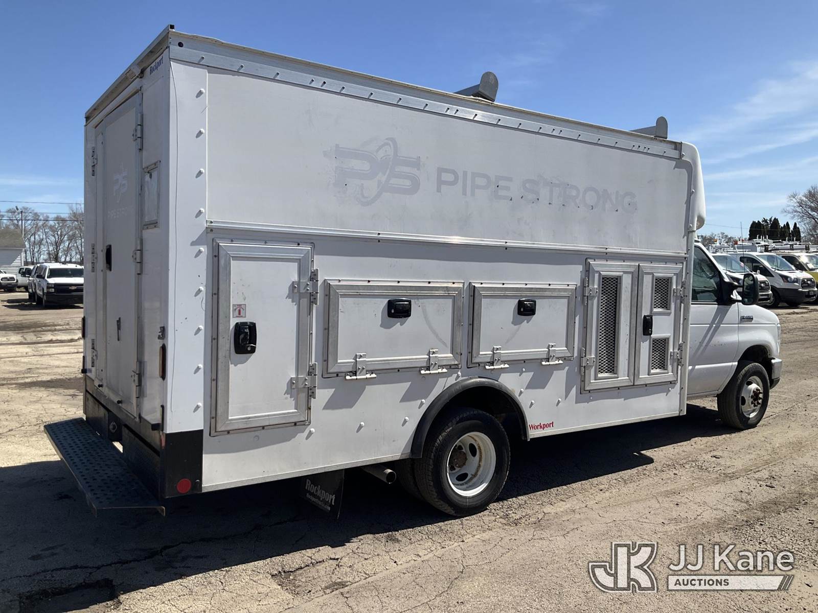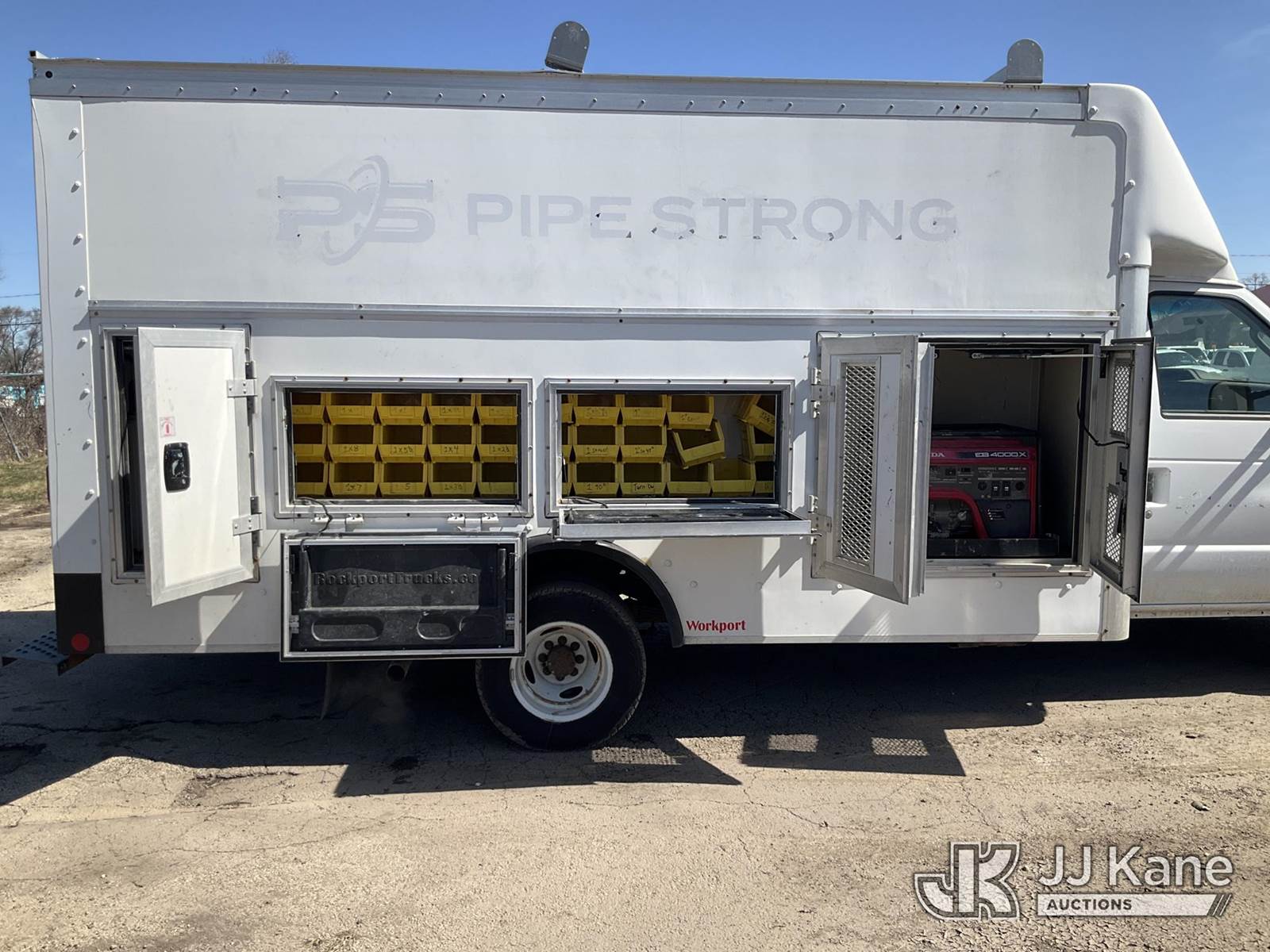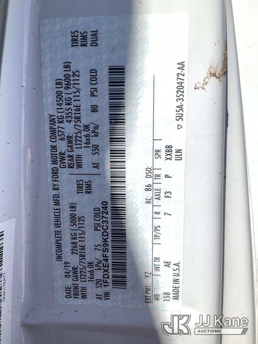 2019 Ford Econoline E450 Cutaway Enclosed Service Van, 10-cyl gas, RWD, Auto, A/C, with Honda EB4000X generator, (55,436 miles) (Runs & Moves, Generator Operates) (Paint Damage, Chipped Windshield, Seller States Brake Issue) This is a Titled Item NOTE: This unit is being sold AS IS/WHERE IS via Timed Auction and is located in South Beloit, IL. Inspection & preview days for this unit are the 2 business days prior to the first day of items closing for this auction, item is located at 14354 Dearborn Ave South Beloit, IL and hours of operations are 8a-4p. For pre-sale questions, please contact Derek Eklund at (608) 904-0618 or (derek.eklund@jjkane.com). (Buyer is responsible for removal. Assistance by consignor or JJ Kane Auctions is not assured.)