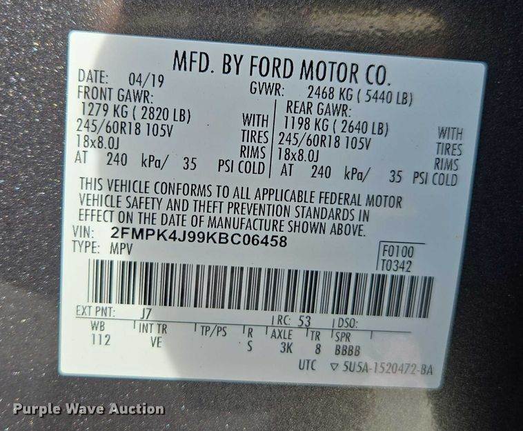 VIN: 2FMPK4J99KBC06458