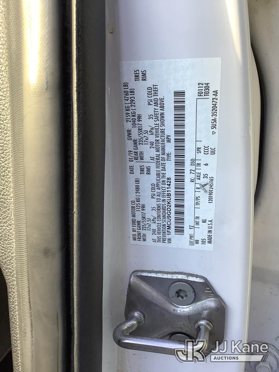 2019 Ford Escape SE 4WD 4-Door Sport Utility Vehicle, 1.5L L4 Gas, 6-Speed Automatic, A/C, (162,509 miles) (Runs & Moves) (Removal is by Appointment Only, Buyer MUST make a appointment prior to picking up, Buyer/Transporter Must have PAID IN FULL RELEASE. No onsite assistance available, Please Come prepared.) This is a Titled Item NOTE: This unit is being sold AS IS/WHERE IS via Timed Auction and is located in Harmans, MD. Inspection & preview days for this unit are by appointment only; please contact us at contact@jjkane.com or 84-Go-JJKane for more details. For pre-sale questions, please contact the on-site office @ (443) 557-0025 or Kevin.Waggoner@JJKane.com. (Buyer is responsible for removal. Assistance by consignor or JJ Kane Auctions is not assured.)