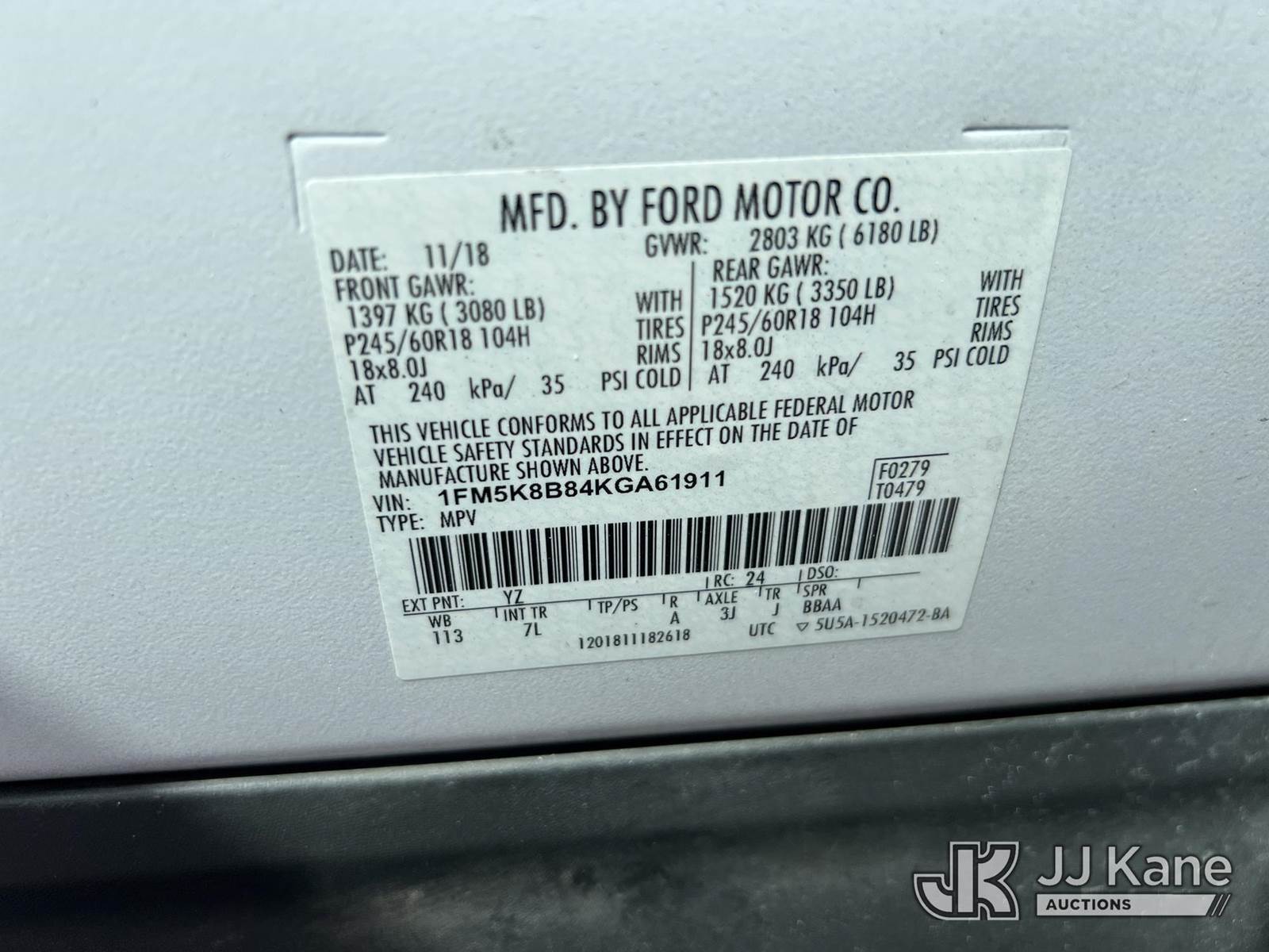 2019 Ford Explorer 4x4 4-Door Sport Utility Vehicle, 6-cyl gas, Auto, A/C, (132,028 miles) (Wrecked) (Runs & Moves) (Jump To Start, Check Engine Light On, Body Damage) This is a Titled Item NOTE: This unit is being sold AS IS/WHERE IS via Timed Auction and is located in Milton, FL. For more information & removal arrangements please contact Shae @ shae@jjkane.com. Sales Tax Collected Based on Residency (Buyer is responsible for removal. Assistance by consignor or JJ Kane Auctions is not assured.)