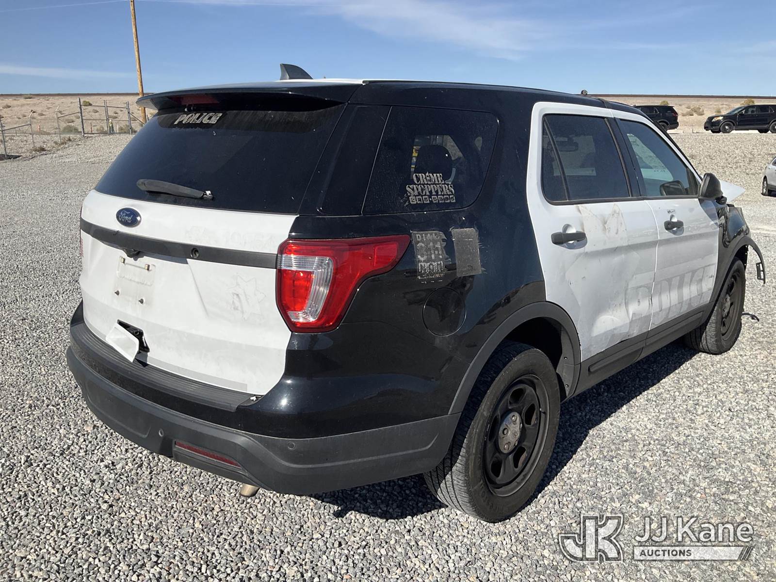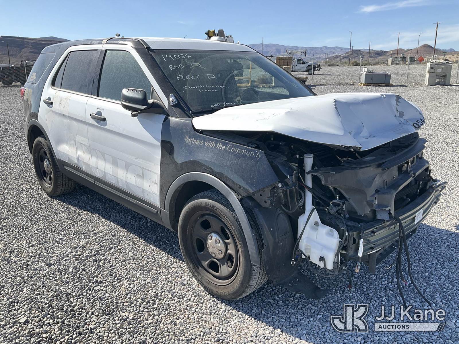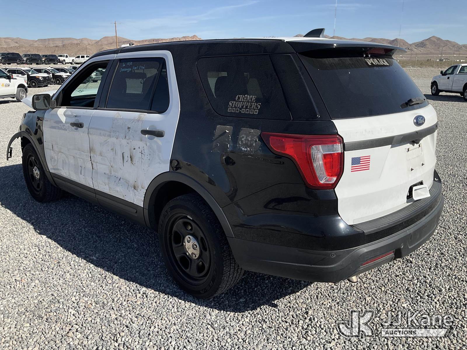 2019 Ford Explorer Police 4WD 4-Door Sport Utility Vehicle, 6-cyl gas, Auto, A/C, (119,520 miles) (Wrecked) (Runs & Moves) (Jump to Start, Check Engine Light On) This is a Titled Item NOTE: This unit is being sold AS IS/WHERE IS via Timed Auction and is located in Las Vegas, NV. Inspection & preview days for this unit are the 2 business days prior to the first day of items closing for this auction, item is located at 14655 Grand Valley Pkwy Las Vegas, NV 89165 and hours of operations are 8a-4p. Titles executed exactly as bidder registered. Ensure your name and/or business name and address in JJ Kane and/or ProxiBid is correct before bidding. For pre-sale questions, please contact Office Staff @ (801) 519-0123 and provide sale date and lot number. Las Vegas Dealer License Number DLR000053086 / OHV000053094. (Buyer is responsible for removal. Assistance by consignor or JJ Kane Auctions is not assured.)