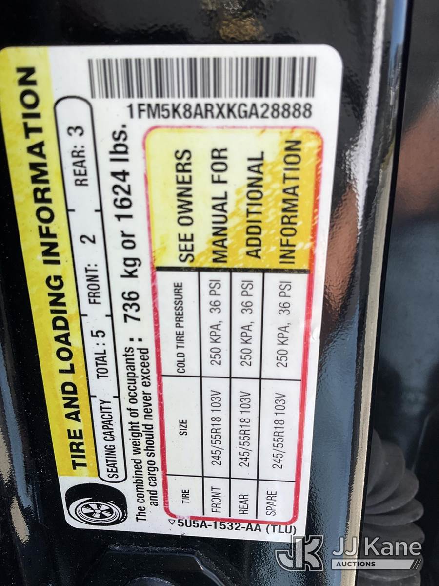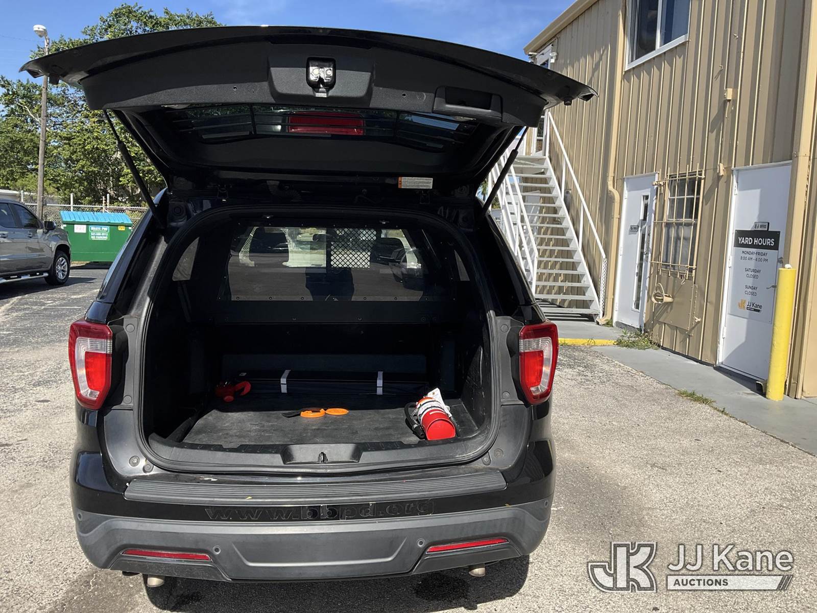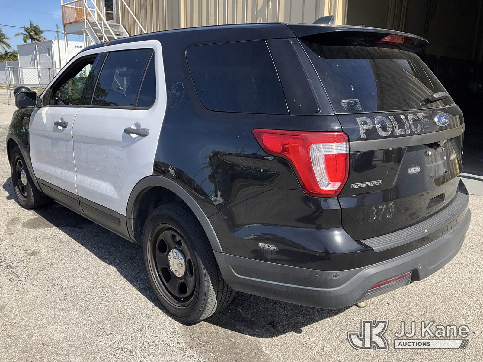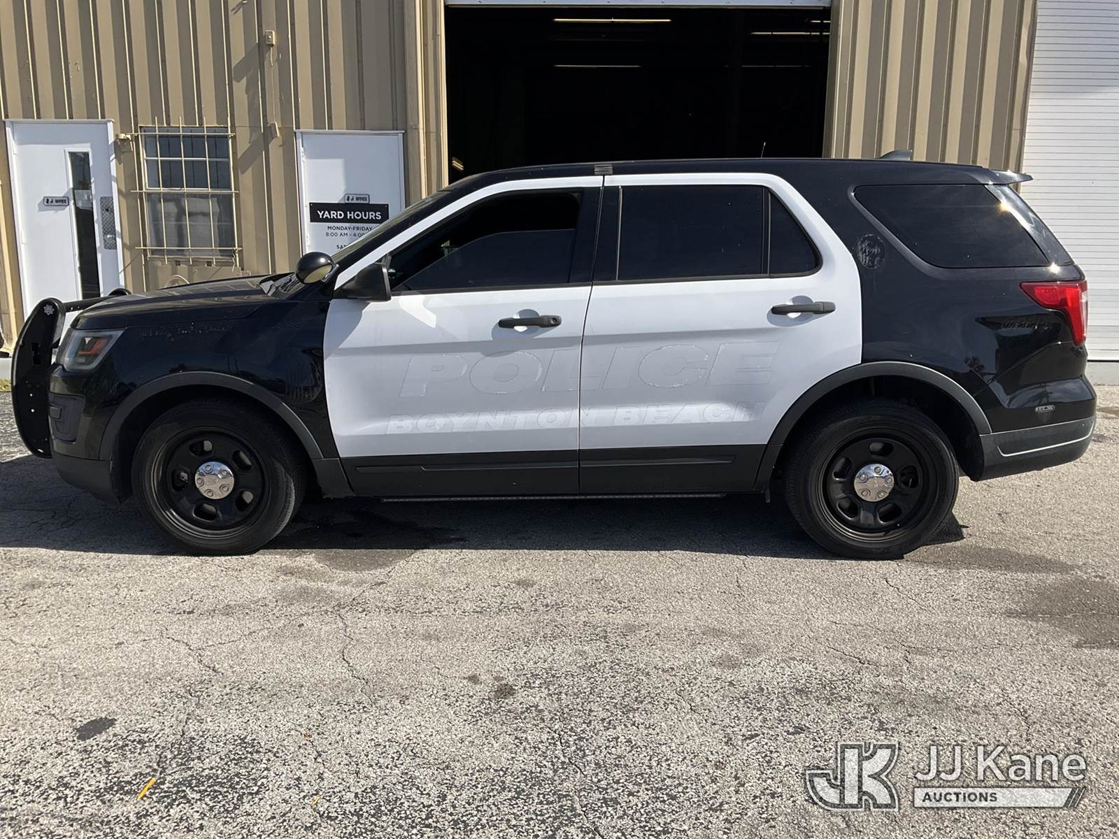 2019 Ford Explorer Police 4WD Sport Utility Vehicle, 6-cyl gas, Auto, A/C, with Setina heavy duty front bumper guard, (91,395 miles) (Runs & Moves) (Interior & Paint Damage) (FL Residents Purchasing Titled Items - tax, title & registration fees will be collected at the maximum rate of $400.00 under 25,999 and $800.00 for Over 26,000 and $250.00 trailers - Proof of insurance is mandatory; Out of State Residents Purchasing Title Items - tax will be collected based upon your state rate.) (Reads 10,885 hours) This is a Titled Item NOTE: This unit is being sold AS IS/WHERE IS via Timed Auction and is located in West Palm Beach, FL. For Pick Up & Removal information, please contact: Andy Garcia @ 561-215-0085. Removals require 24-hr Notice by Appointment Only, Buyer/Hauler must present copy of Paid-in-Full JJ Kane Release Form upon arrival. Purchaser acknowledges ALL lots must be removed within 10 business days of Auction, or a towing & storage fee may be incurred. (Buyer is responsible for removal. Assistance by consignor or JJ Kane Auctions is not assured.)