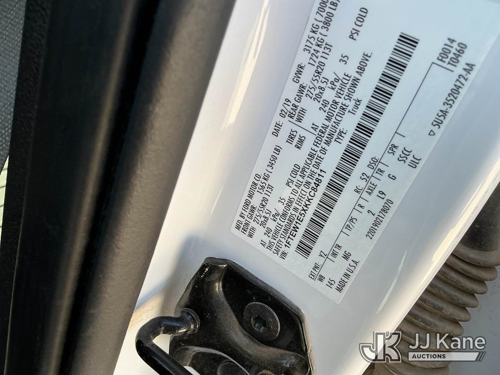 2019 Ford F-150 Crew-Cab Pickup Truck, 8-cyl gas, 4wd, 6-Speed Automatic, A/C, with Bed Toolbox , (68,934 miles) (Runs & Moves) (Jump To Start, Once Jumpstart Cables Are Removed Engine Shuts Down, Check Engine Light On, Battery System Light Is On) (Reads 4,248 hours) This is a Titled Item NOTE: This unit is being sold AS IS/WHERE IS via Timed Auction and is located in Midland, TX. For pre-sale questions please call EJ Brown at (915) 341-2565. (Buyer is responsible for removal. Assistance by consignor or JJ Kane Auctions is not assured.)