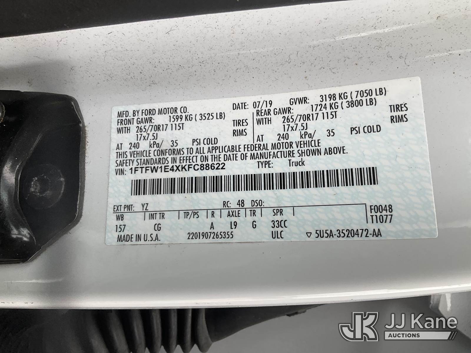 2019 Ford F-150 Crew-Cab Pickup Truck, 3.5L V6 DOHC 24V 4WD, GAS, 6-Speed Automatic, A/C, with Bedcover , (203,073 miles) (Runs, Moves)( Body Damage ) (Reads 5,070 hours) This is a Titled Item NOTE: This unit is being sold AS IS/WHERE IS via Timed Auction and is located in Charlotte, MI. Inspection & preview days for this unit are the 2 business days prior to the first day of items closing for this auction, item is located at 750 Island Hwy Charlotte, MI 48813 and hours of operations are 8a-4p. For pre-sale questions, please contact Corey Cook at (517) 983-0796 or corey.cook@jjkane.com (Buyer is responsible for removal. Assistance by consignor or JJ Kane Auctions is not assured.)