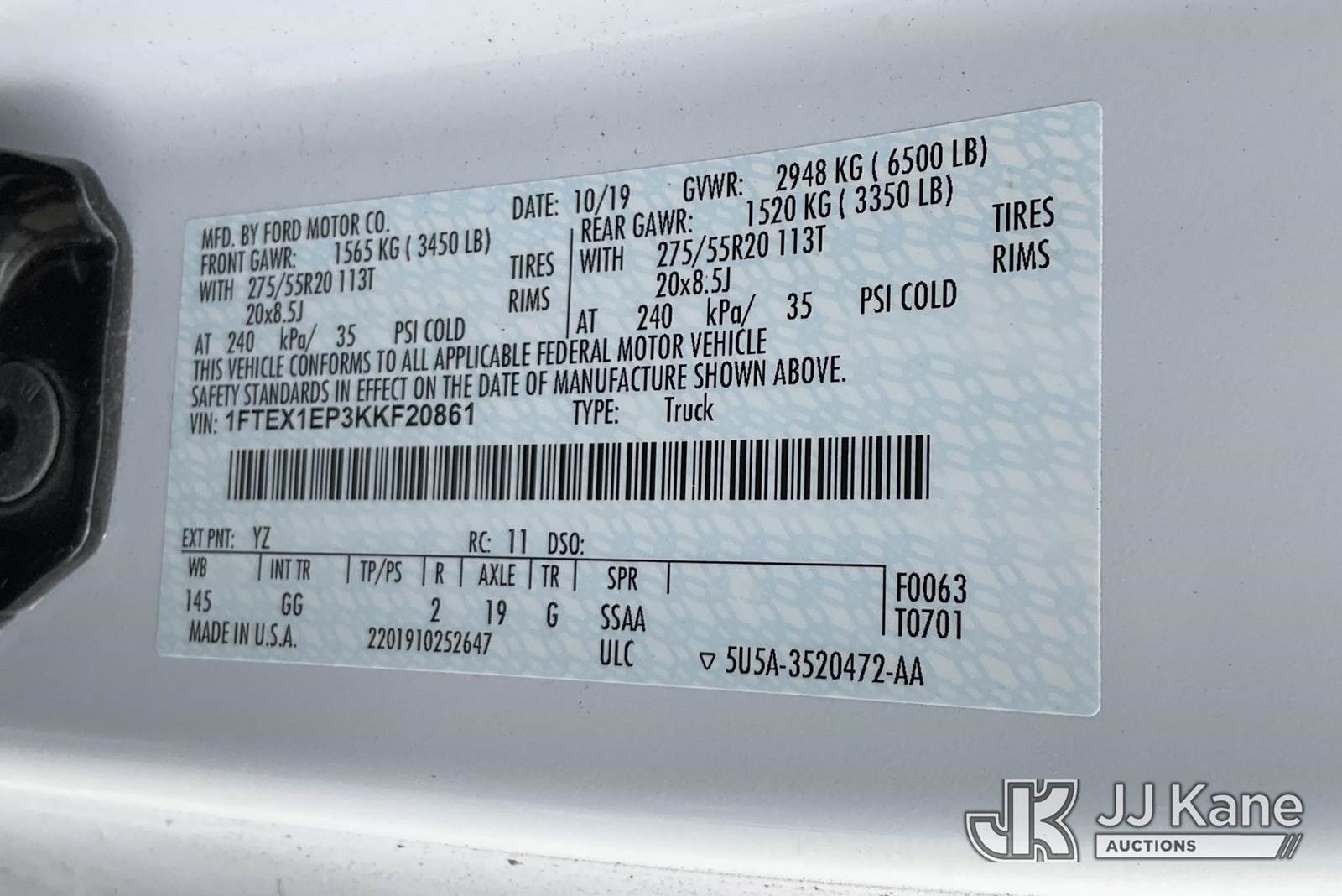 2019 Ford F-150 Extended-Cab Pickup Truck, 2.7L V6 Auto, 4wd, gas, A/C, (173,931 miles) (Runs & Moves) (Engine Noise, Check Engine Light On) (See Video For Engine Noise) This is a Titled Item NOTE: This unit is being sold AS IS/WHERE IS via Timed Auction and is located in Shrewsbury, MA. Inspection & preview days for this unit are the 2 business days prior to the first day of items closing for this auction, item is located at 11 Fortune Blvd Shrewsbury, MA 01545 and hours of operations are 8a-4p. For pre-sale questions, please contact Rob Gifford @ (508) 864-4126. (Buyer is responsible for removal. Assistance by consignor or JJ Kane Auctioneers is not assured.)