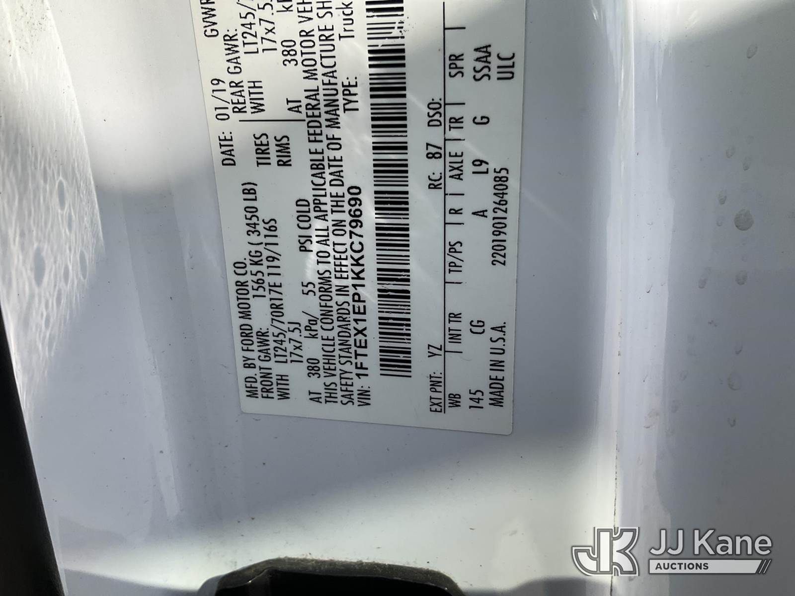 2019 Ford F-150 Extended-Cab Pickup Truck, 6-cyl gas, 6-Speed Automatic, 4wd, A/C, with camper shell, (201,266 miles) (Runs & Moves) (Check Engine Light On, Needs Engine Repairs, Needs ABS System Repairs) This is a Titled Item NOTE: This unit is being sold AS IS/WHERE IS via Timed Auction and is located in Waxahachie, TX. Inspection & preview days for this unit are the 2 business days prior to the first day of items closing for this auction, item is located at 999 Solon Rd Waxahachie, TX 75165 and hours of operations are 8a-4p. For pre-sale questions, please contact Alex Bayless @ (469) 550-4938. (Buyer is responsible for removal. Assistance by consignor or JJ Kane Auctioneers is not assured.)
