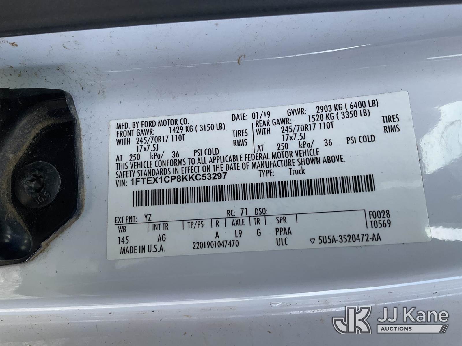 2019 Ford F-150 Extended-Cab Pickup Truck, 6-cyl gas, RWD, 6-Speed Automatic, A/C, (194,809 miles) (Runs & Moves) (Check Engine Light On, Paint Damage) This is a Titled Item NOTE: This unit is being sold AS IS/WHERE IS via Timed Auction and is located in Verona, KY. Inspection & preview days for this unit are the 2 business days prior to the first day of items closing for this auction, item is located at 2841 Verona-Mudlick Rd Ste B Verona, KY 41092 and hours of operations are 8a-4p. For pre-sale questions, please contact Office Staff @ (502) 612-5080. Auctioneer Michael Whitebread / License # 256617. (Buyer is responsible for removal. Assistance by consignor or JJ Kane Auctions is not assured.)