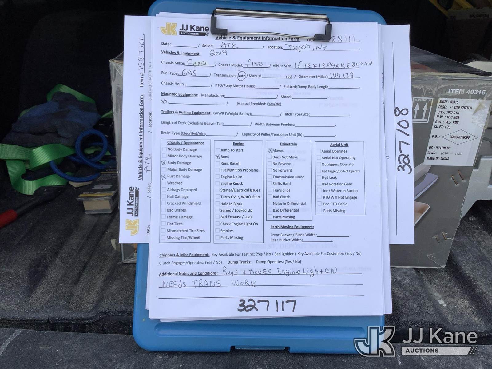 2019 Ford F-150 Extended-Cab Pickup Truck, 6-cyl gas, 4wd, 6-Speed Automatic, A/C, (189,138 miles) (Runs & Moves) (Engine Light On, Traction Control Light On) (Seller States: Needs Transmission Work) This is a Titled Item NOTE: This unit is being sold AS IS/WHERE IS via Timed Auction and is located in Deposit, NY. Inspection & preview days for this unit are by appointment only; please contact us at contact@jjkane.com or 84-Go-JJKane for more details. (Buyer is responsible for removal. Assistance by consignor or JJ Kane Auctions is not assured.)