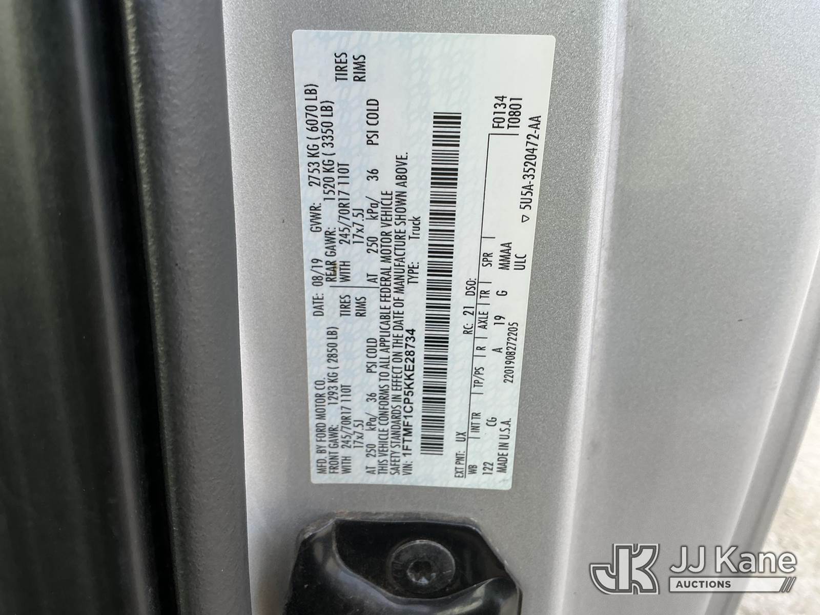 2019 Ford F-150 Pickup Truck, 6-cyl gas, RWD, Auto, A/C, (125,389 miles) (Runs & Moves) (Cracked Windshield) This is a Titled Item NOTE: This unit is being sold AS IS/WHERE IS via Timed Auction and is located in China Grove, NC. Inspection & preview days for this unit are the 2 business days prior to the first day of items closing for this auction, item is located at 820 E NC Hwy 152 China Grove, NC 28023 and hours of operations are 8a-4p. For pre-sale questions, please contact Office Staff @ (704) 674-1113. (Buyer is responsible for removal. Assistance by consignor or JJ Kane Auctions is not assured.)