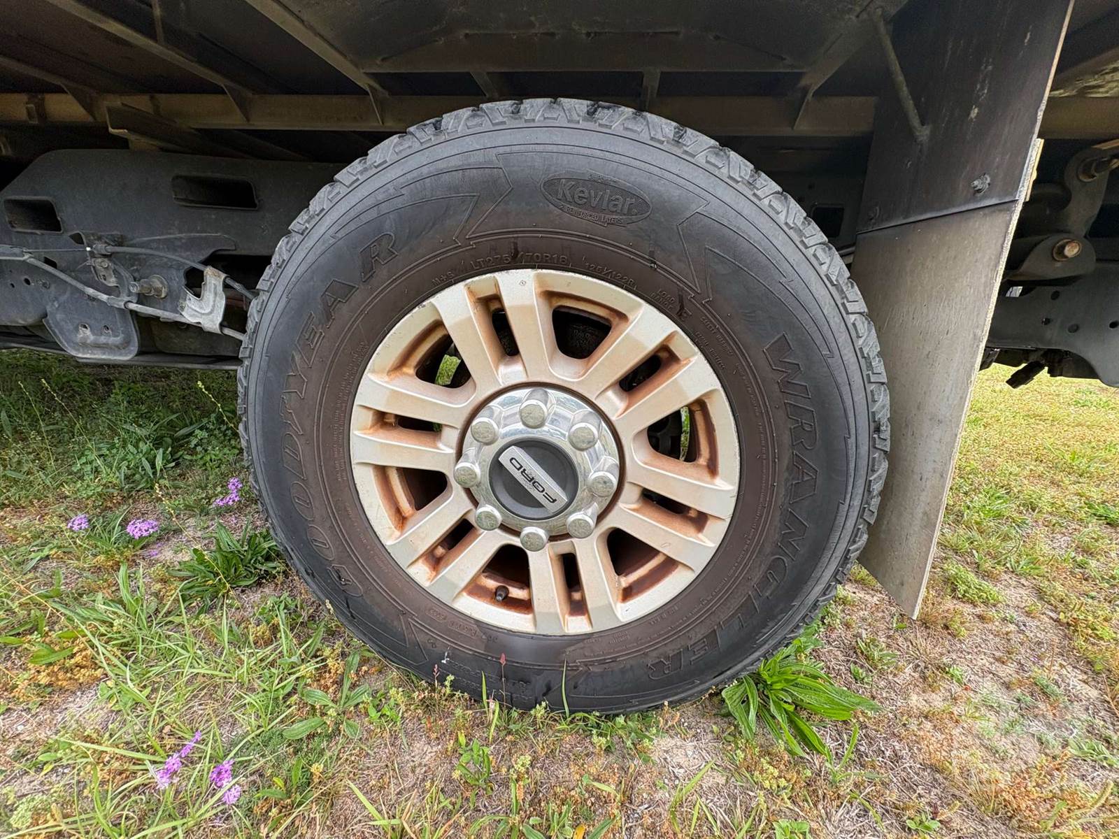 SINGLE AXLE EXTENDED CAB 4X4 FLATBED TRUCK, FORD 6.2L GAS, 383 HP, AUTOMATIC, 4X4, SPRING SUSPENSION, DIFF LOCK, CRUISE CONTROL, REAR HITCH, 10000 LBS GVWR, ALUMINUM DISC WHEELS, ALUMNE MODEL 1212 FLATBED BODY W/FOLD DOWN SIDES, BRUSH GUARD/WINCH BUMPER W/RECEIVER HITCH, RUNNING BOARDS, LT275/70R18 TIRES, ODOMETER READS: 141841, ***LOCATED IN DEFUNIAK SPRINGS, FL******LOCATED IN DEFUNIAK SPRINGS, FL***