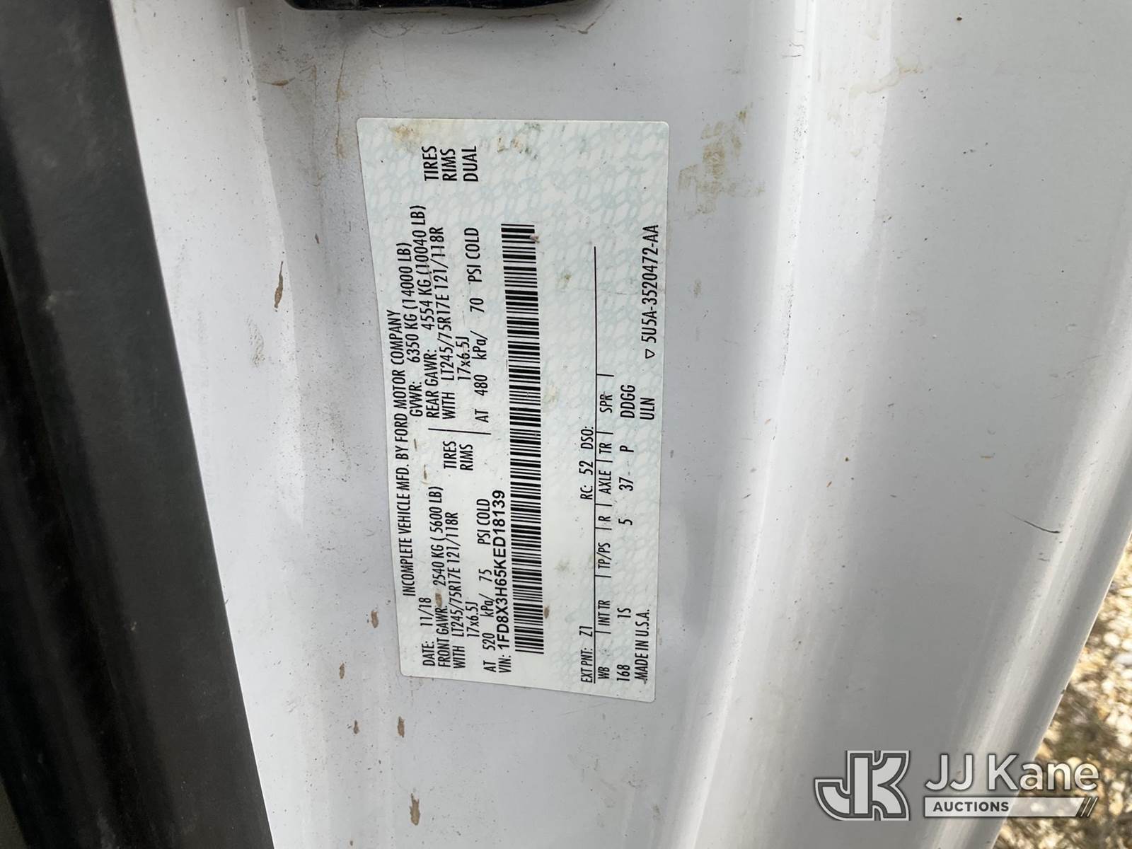 2019 Ford F-350 SD Cab & Chassis, 8-cyl gas, 6-Speed Automatic, 4wd, A/C, True Mileage Unknown (Starts on Jump, Runs, Does Not Move) (Interior Fire Damage, Passenger Side Air Bag Deployed, Dashboard Does Not Turn On, Unknown Operating Condition, Body Damage, Missing Parts, Buyer Responsible For Loading/Removal) This is a Titled Item NOTE: This unit is being sold AS IS/WHERE IS via Timed Auction and is located in Hawk Point, MO. Inspection & preview days for this unit are the 2 business days prior to the first day of items closing for this auction, item is located at 25 State Highway A Hawk Point, MO 63349 and hours of operations are 8a-4p. For pre-sale questions, please contact Adam Stanek at (636) 295-1594. (Buyer is responsible for removal. Assistance by consignor or JJ Kane Auctions is not assured.)