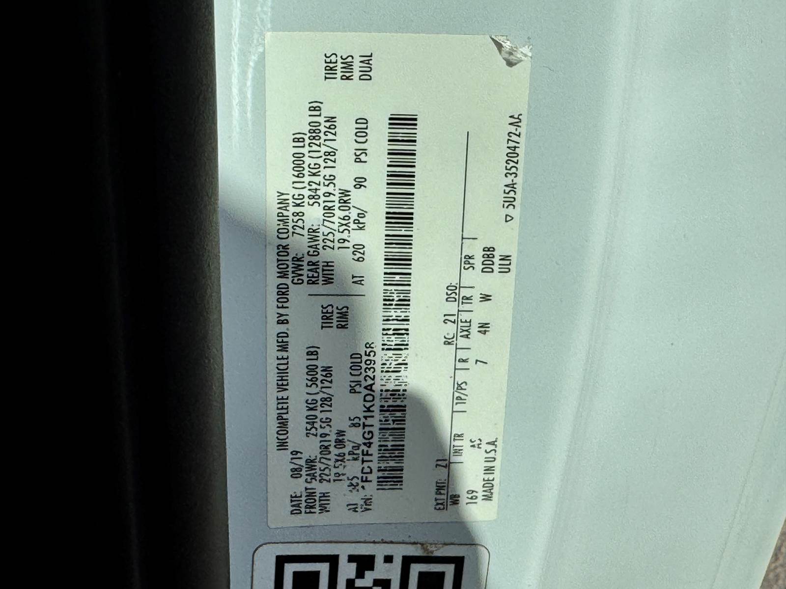 VIN: 1FDTF4GT1KDA23958