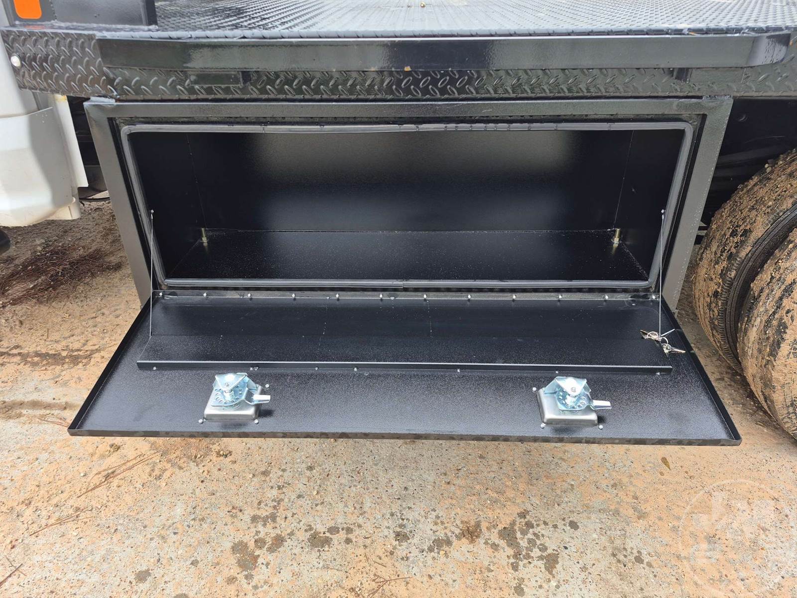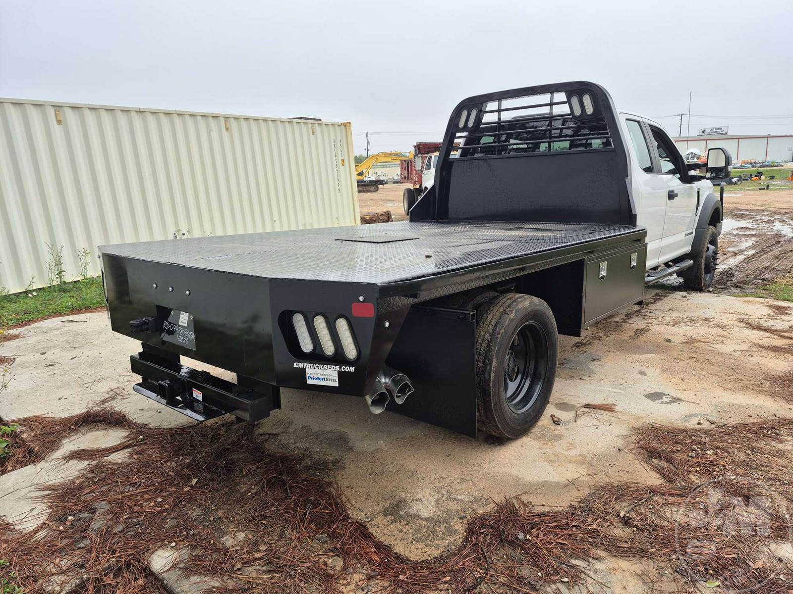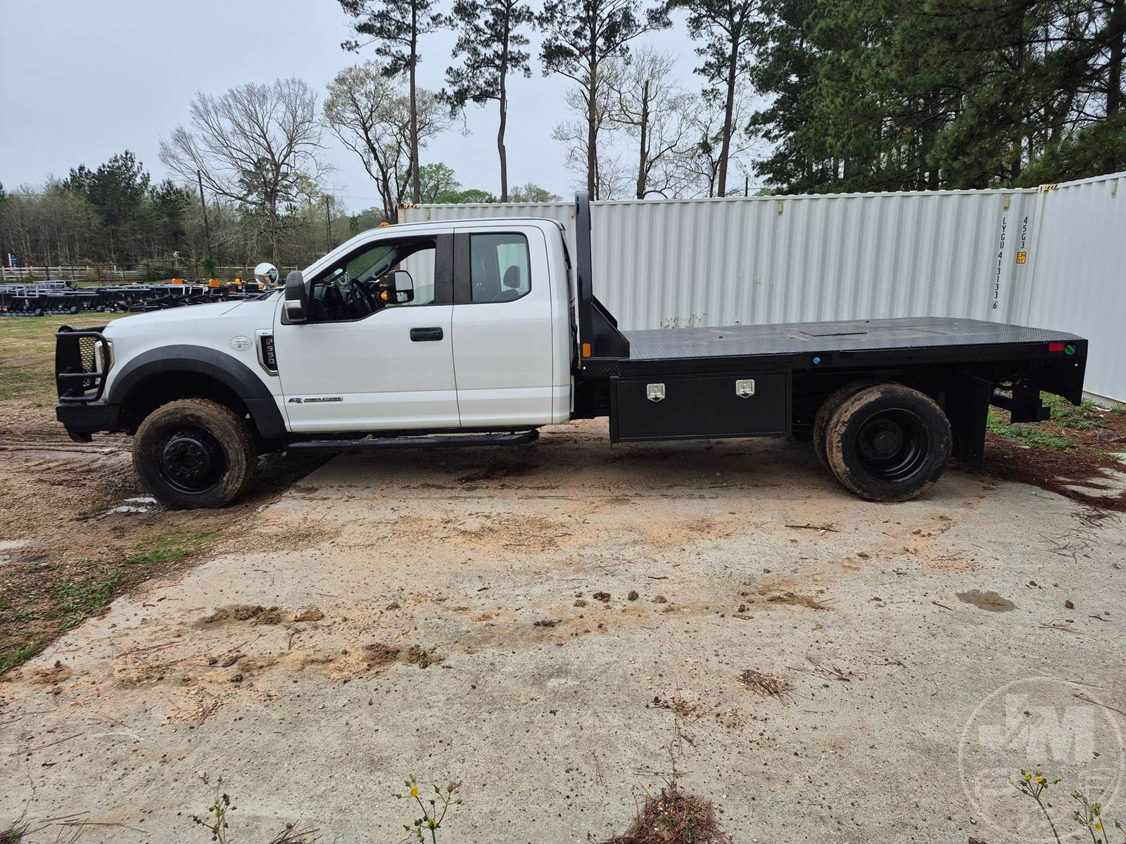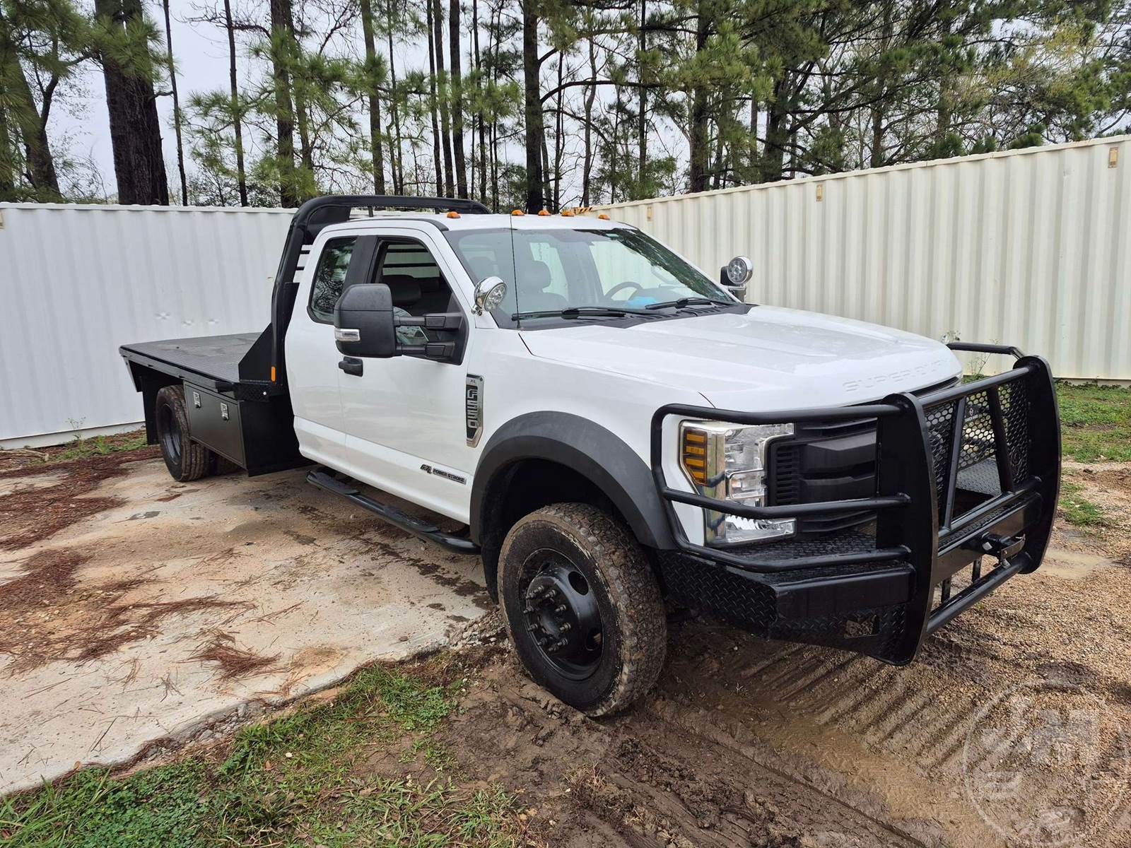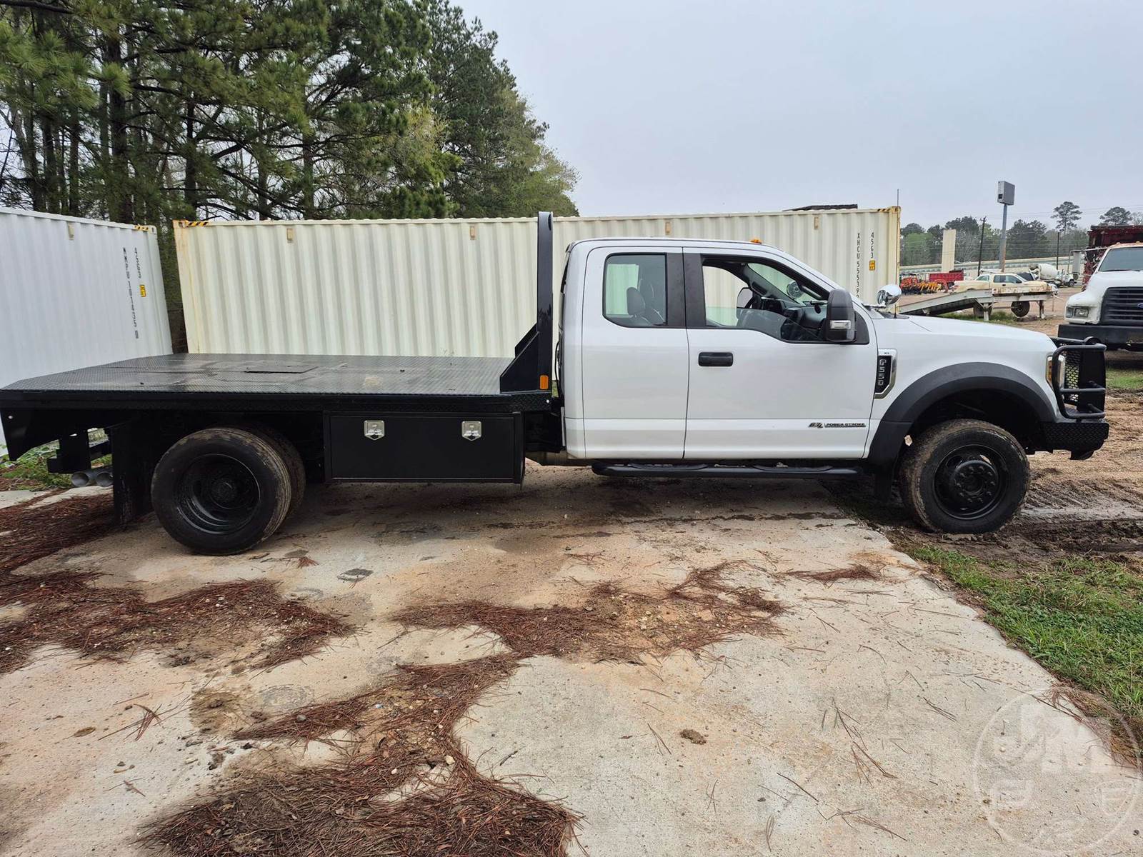 SINGLE AXLE EXTENDED CAB 4X4 FLATBED TRUCK, 11', STEEL BED, 6.7L POWERSTROKE DIESEL, AUTOMATIC, 4X4, SPRING SUSPENSION, HEADACHE RACK, CRUISE CONTROL, 191IN. " WB, 19500LB GVWR, 225/70R19.5 TIRES, 11.5 BED W/GOOSNECK & RECIEVER HITCH , ODOMETER READS: 240383