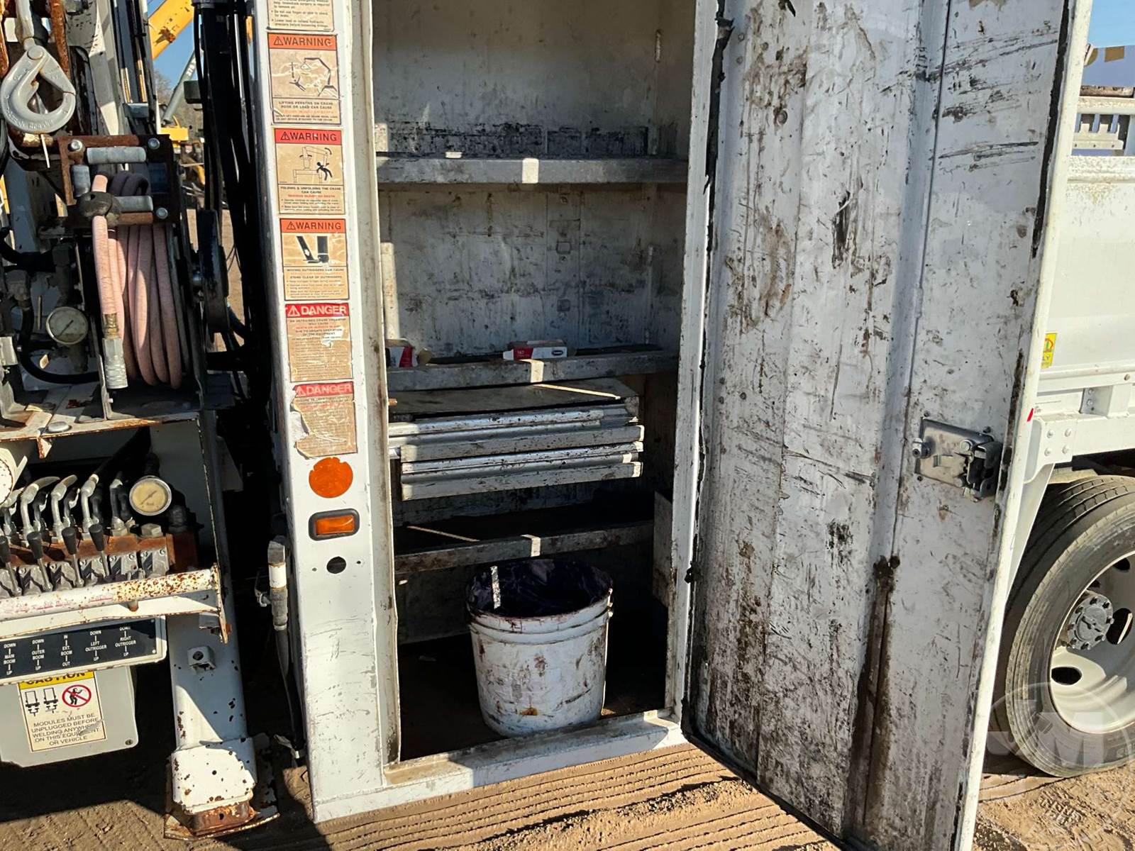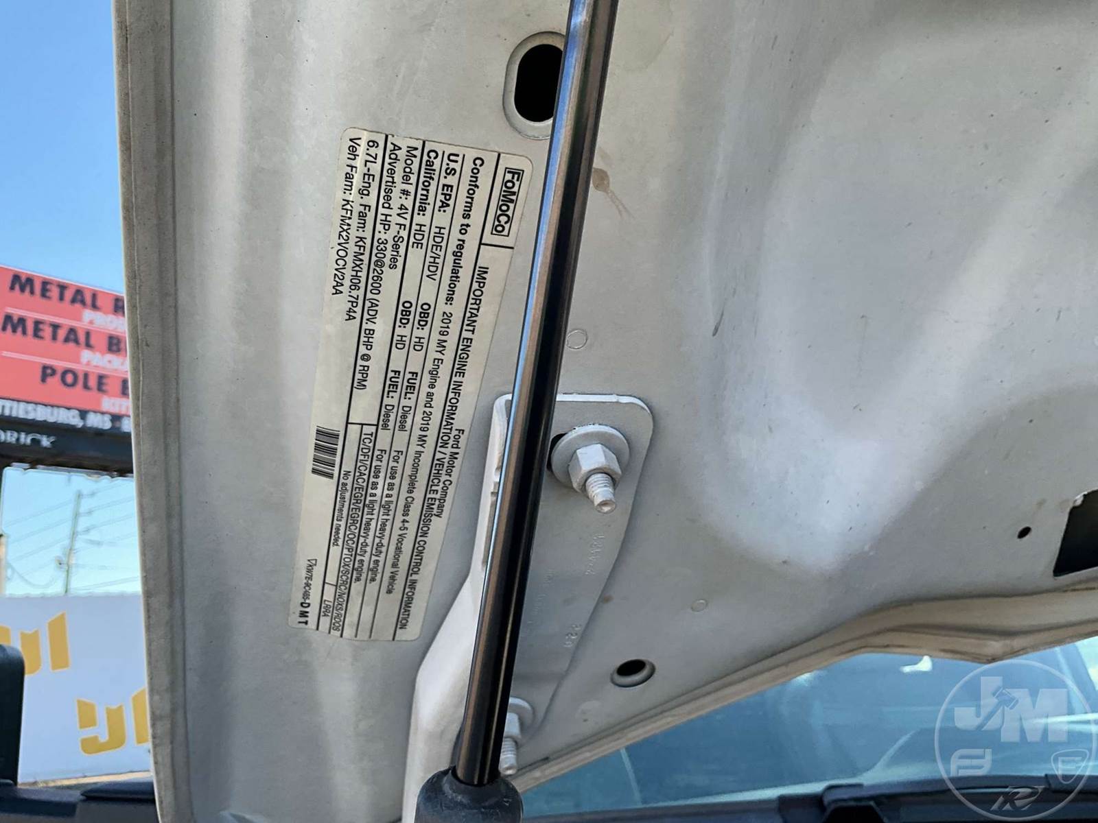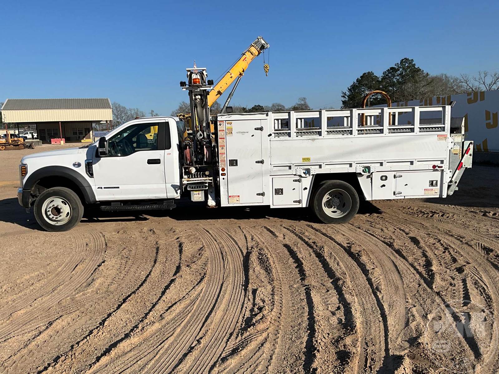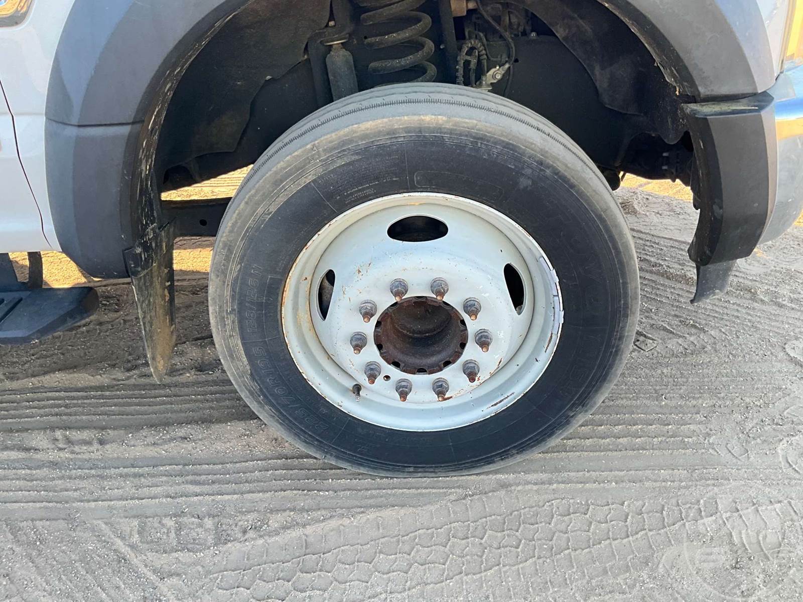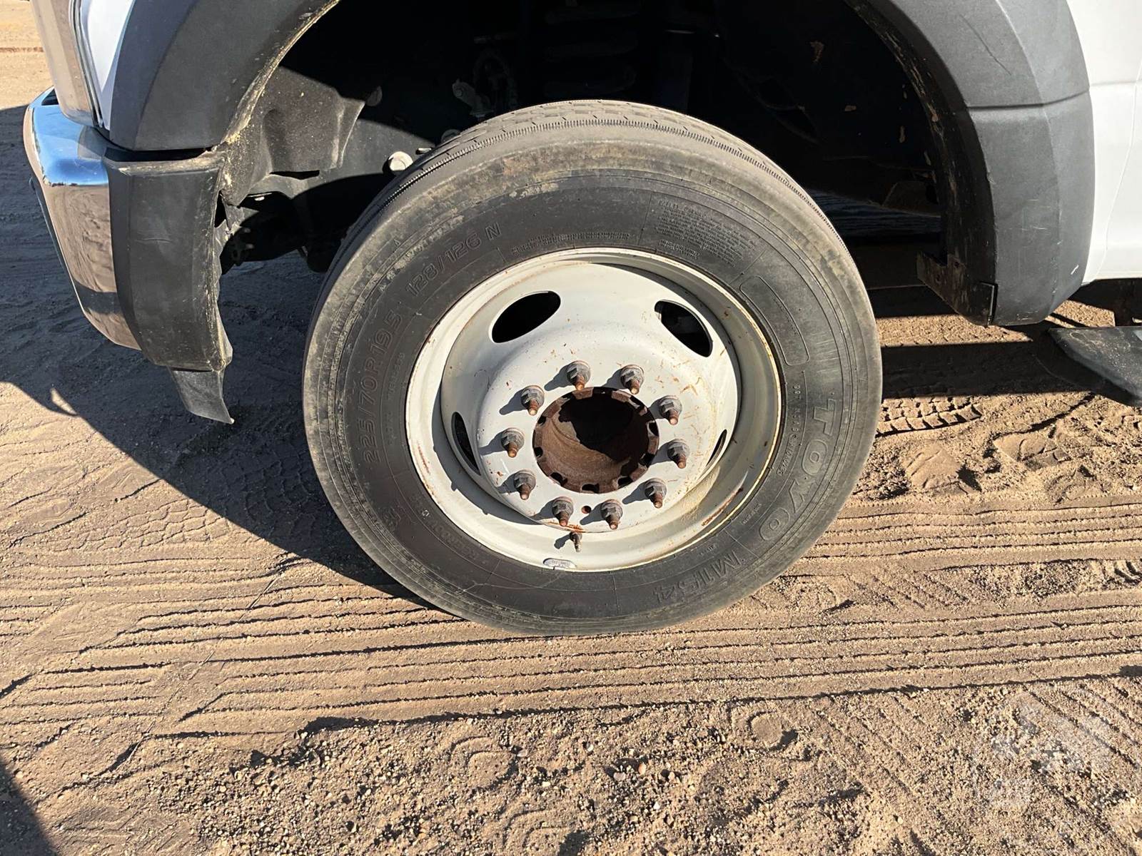 S/A UTILITY TRUCK, FORD, 6.7L POWERSTROKE , 440 HP, AUTOMATIC, SPRING SUSPENSION, 193 " WB, 19500 LBS GVWR, 13', TIRE SERVICE BODY, TIRE BOOM, CRANE REMOTE CORDLESS, HYDRAULIC AIR COMPRESSOR, DUAL HOSE REELS, LIFT GATE, HYDRAULIC OUTRIGGERS, STEEL DISC WHEELS, 225/70R19.5 TIRES, ODOMETER READS: 122674