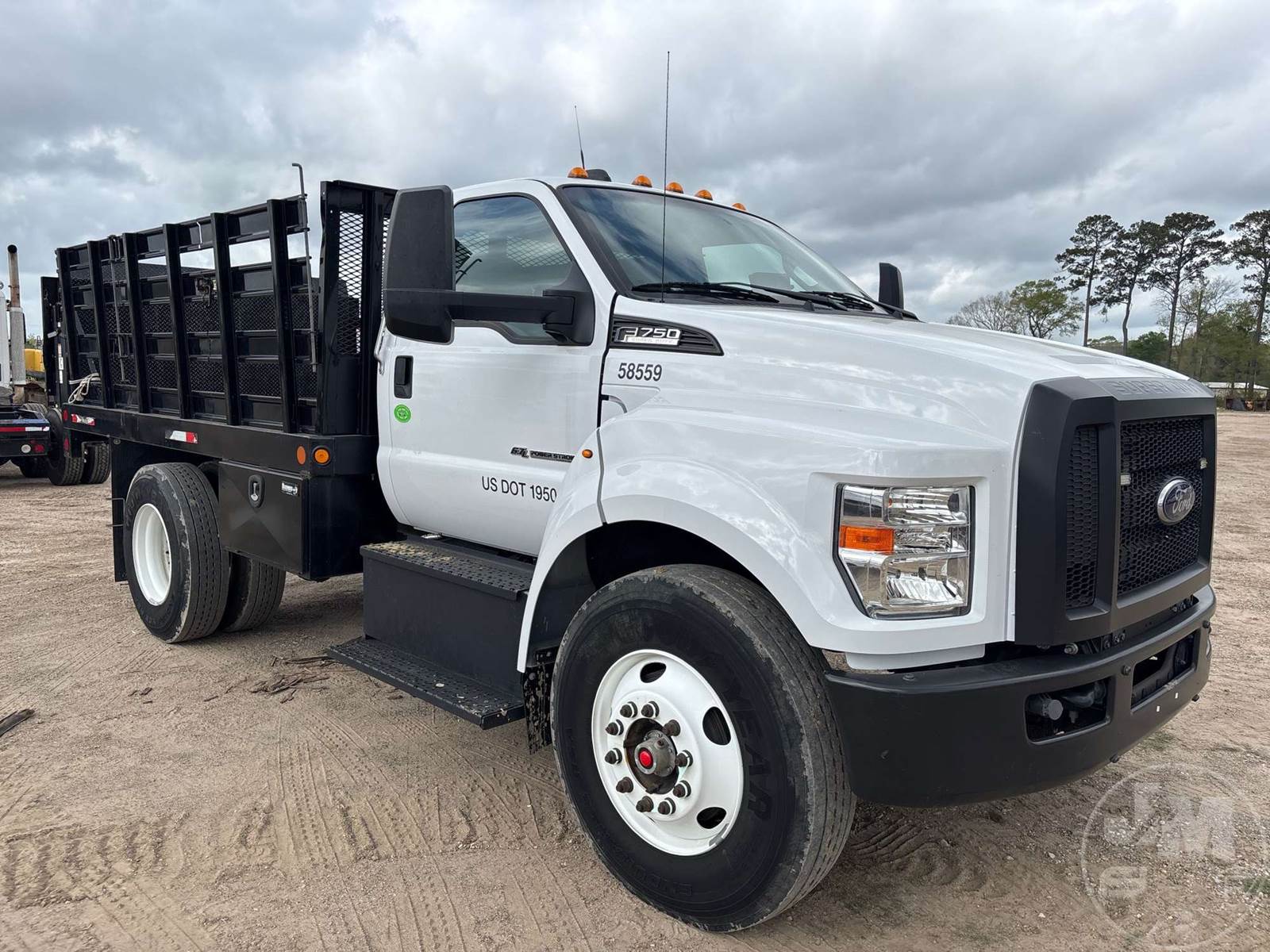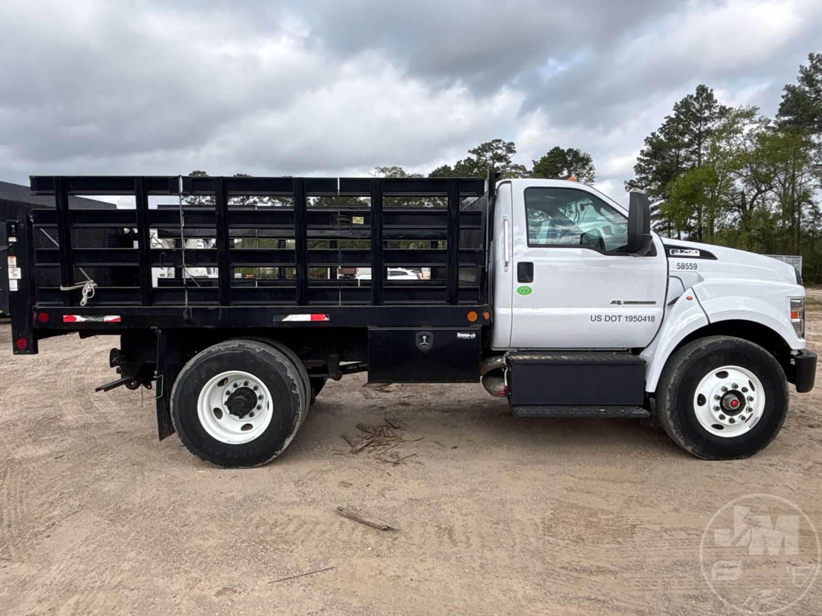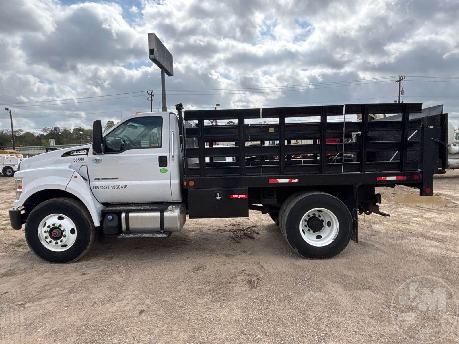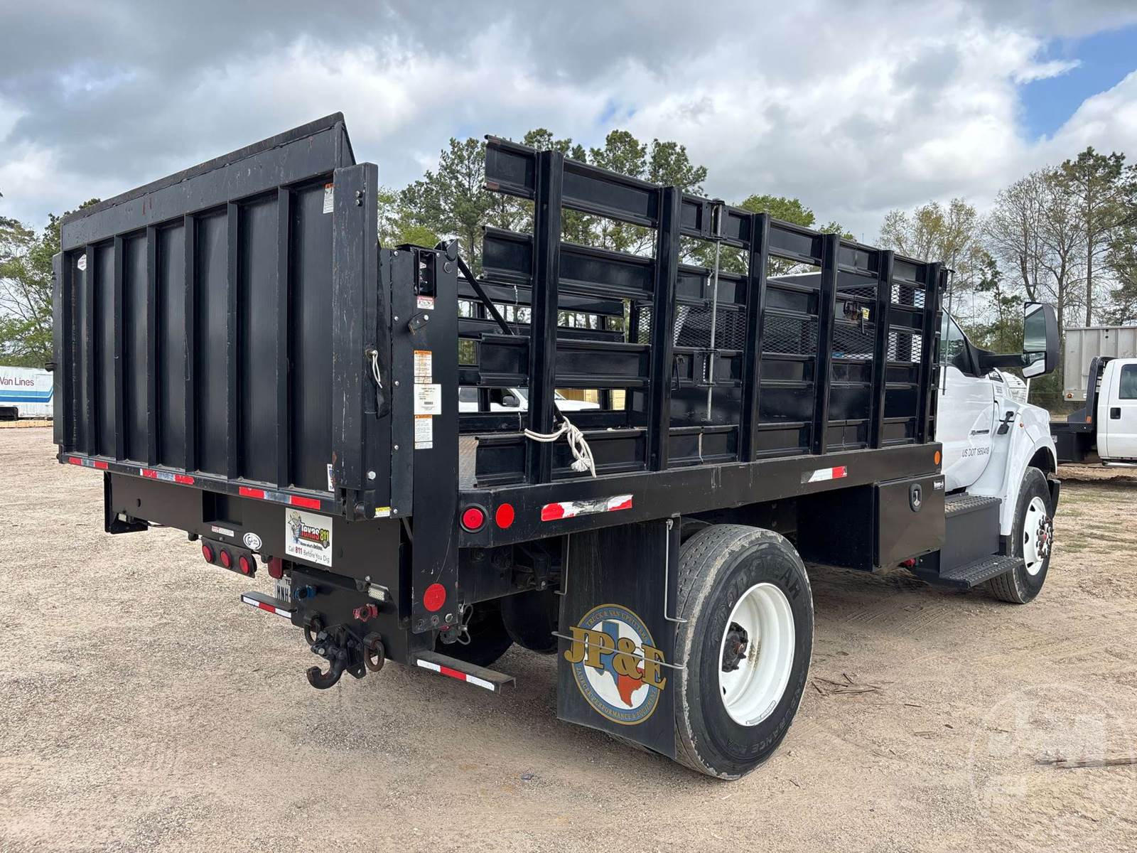 SINGLE AXLE REGULAR CAB STAKE BED TRUCK, Â 12' , STEEL BED, FORD 6.7L POWERSTROKE , AUTOMATIC, SPRING SUSPENSION, HEADACHE RACK, CRUISE CONTROL, 152 " WB, 10K FRONTS, 23K REARS, 33000 LBS GVWR, STEEL DISC WHEELS, 11R22.5 TIRES, LIFTGATE, PINTLE HITCH, REAR AIR SUPPLY, ODOMETER READS: 8838