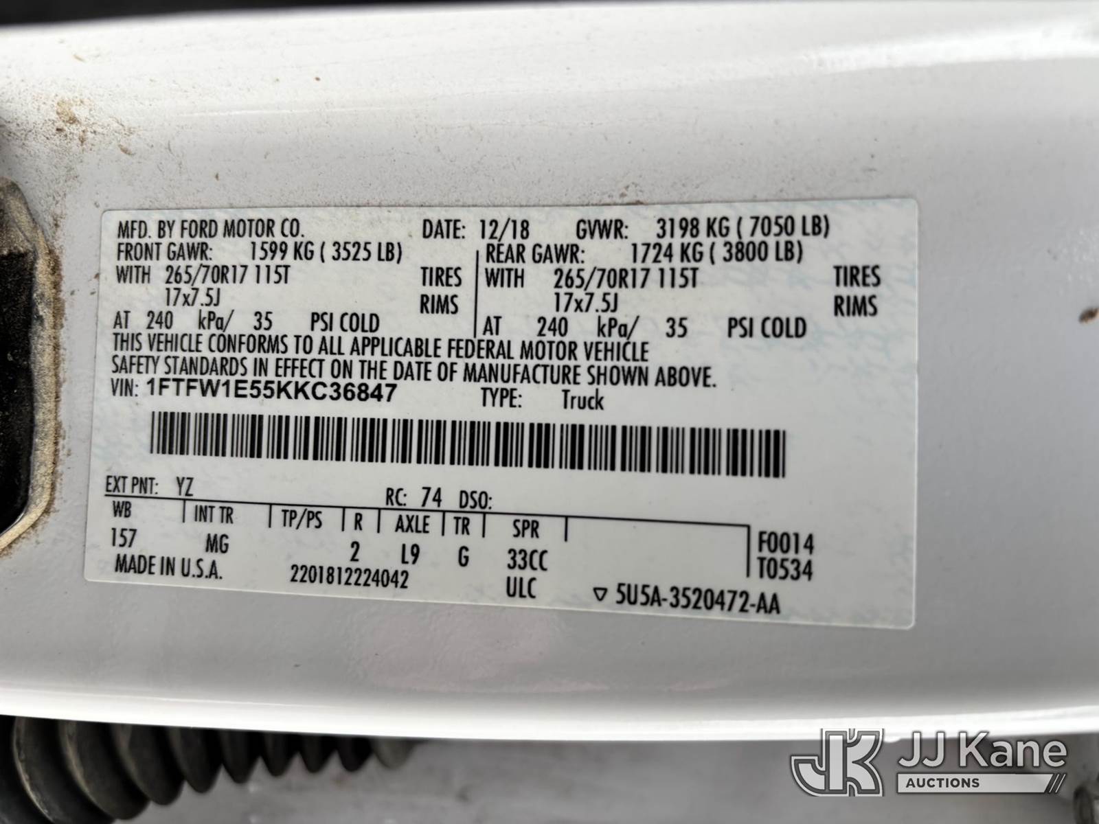 2019 Ford F150 4x4 Crew-Cab Pickup Truck, 5.0L V8 OHV 16V gas, 6-Speed Automatic, A/C, (173,855 miles) (Runs & Moves) (Seller States: Bad Transmission) This is a Titled Item NOTE: This unit is being sold AS IS/WHERE IS via Timed Auction and is located in Nampa, ID. For more information & removal arrangements please contact Mike Vantrimpont @ mike.vantrimpont@jjkane.com (Buyer is responsible for removal. Assistance by consignor or JJ Kane Auctions is not assured.)
