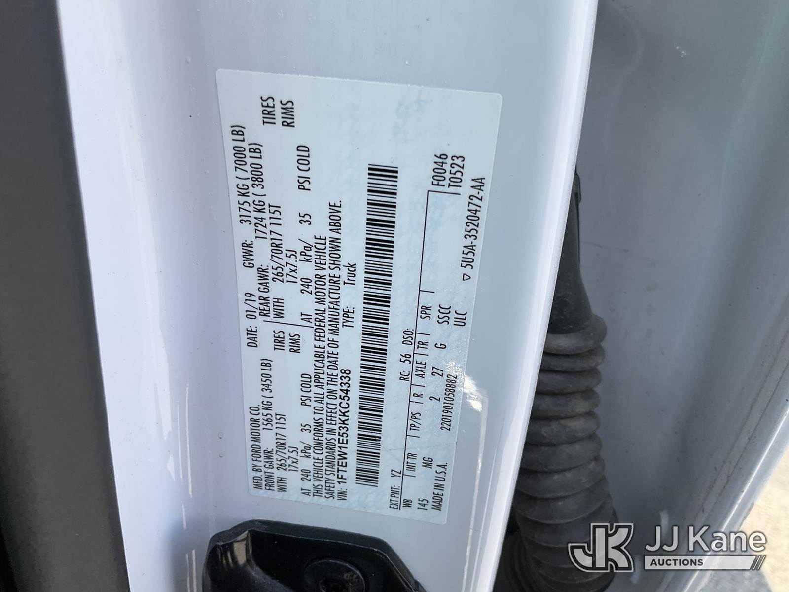 2019 Ford F150 4x4 Crew-Cab Pickup Truck, 8-cyl gas, Auto, A/C, (121,830 miles) (Runs & Moves) (Check Engine Light On, Airbag Light On, Traction Control Light On, ABS Light On, Park Brake Service Required Warning, Brake System Warning Light On) This is a Titled Item NOTE: This unit is being sold AS IS/WHERE IS via Timed Auction and is located in Salt Lake City, UT. Inspection & preview days for this unit are the 2 business days prior to the first day of items closing for this auction, item is located at 2353 N Redwood Rd Salt Lake City, UT 84116 and hours of operations are 8a-4p. Titles executed exactly as bidder registered. Ensure your name and/or business name and address in JJ Kane and/or ProxiBid is correct before bidding. For pre-sale questions, please contact Office Staff @ (801) 519-0123. (Buyer is responsible for removal. Assistance by consignor or JJ Kane Auctions is not assured.)