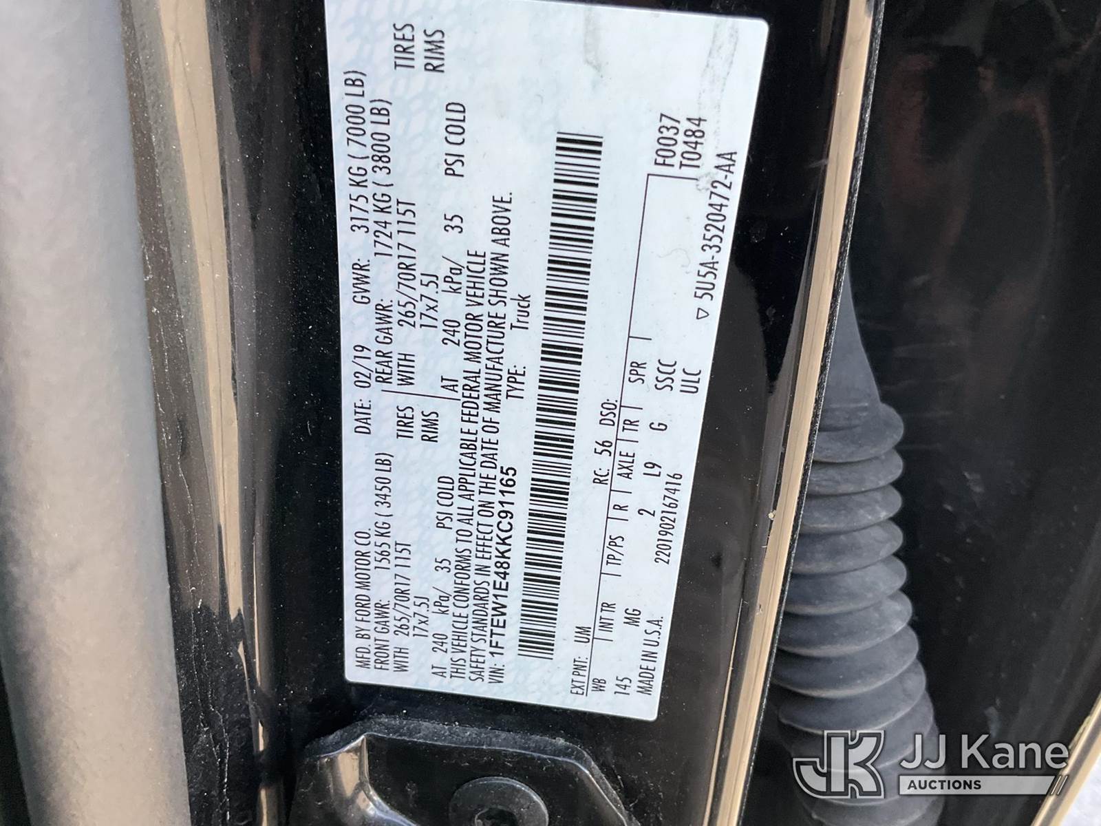 2019 Ford F150 4x4 Crew-Cab Pickup Truck, 6-cyl gas, 4wd, Auto, A/C, (75,756 miles) (Runs & Moves) This is a Titled Item NOTE: This unit is being sold AS IS/WHERE IS via Timed Auction and is located in Salt Lake City, UT. Inspection & preview days for this unit are the 2 business days prior to the first day of items closing for this auction, item is located at 2353 N Redwood Rd Salt Lake City, UT 84116 and hours of operations are 8a-4p. Titles executed exactly as bidder registered. Ensure your name and/or business name and address in JJ Kane and/or ProxiBid is correct before bidding. For pre-sale questions, please contact Office Staff @ (801) 519-0123. (Buyer is responsible for removal. Assistance by consignor or JJ Kane Auctions is not assured.)