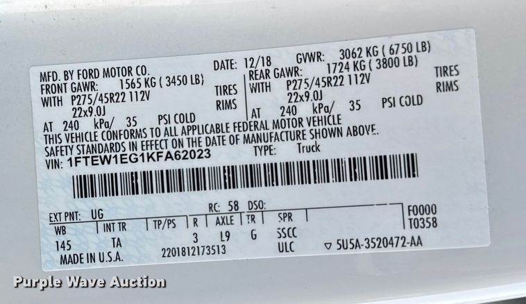 VIN: 1FTEW1EG1KFA62023
