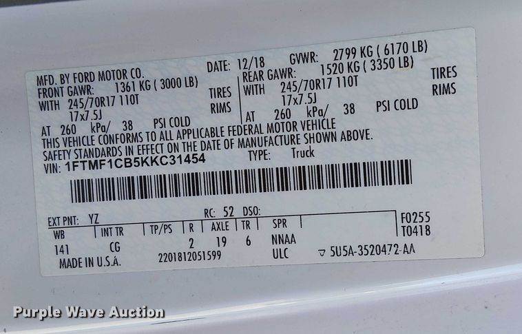VIN: 1FTMF1CB5KKC31454