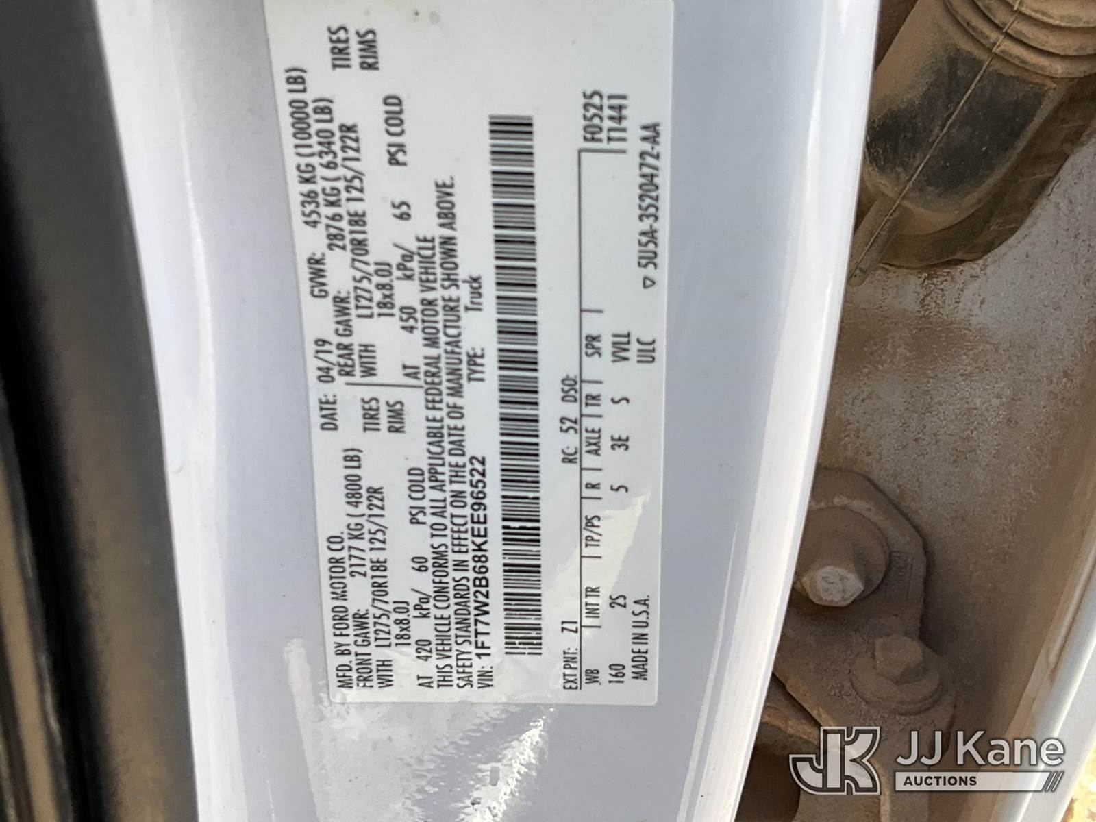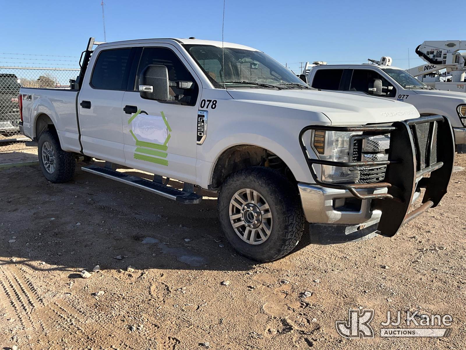 2019 Ford F250 4x4 Crew-Cab Pickup Truck, 8-cyl gas, 6-Speed Automatic, A/C, with aux fuel tank w/ pump, (209,566 miles) (Runs & Moves) (Body Damage) This is a Titled Item NOTE: This unit is being sold AS IS/WHERE IS via Timed Auction and is located in Hobbs, NM. For more information & removal arrangements please contact EJ Brown @ (915) 341-2565. (Buyer is responsible for removal. Assistance by consignor or JJ Kane Auctions is not assured.)