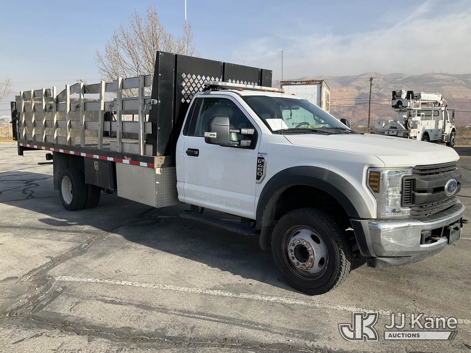 2019 Ford F450 Stake Truck, 10-cyl, Auto, CNG Only, A/C, with Liftgate & 18ft Bed, (53,010 miles) (Runs & Moves) This is a Titled Item NOTE: This unit is being sold AS IS/WHERE IS via Timed Auction and is located in Salt Lake City, UT. Inspection & preview days for this unit are the 2 business days prior to the first day of items closing for this auction, item is located at 2353 N Redwood Rd Salt Lake City, UT 84116 and hours of operations are 8a-4p. Titles executed exactly as bidder registered. Ensure your name and/or business name and address in JJ Kane and/or ProxiBid is correct before bidding. For pre-sale questions, please contact Office Staff @ (801) 519-0123. (Buyer is responsible for removal. Assistance by consignor or JJ Kane Auctions is not assured.)