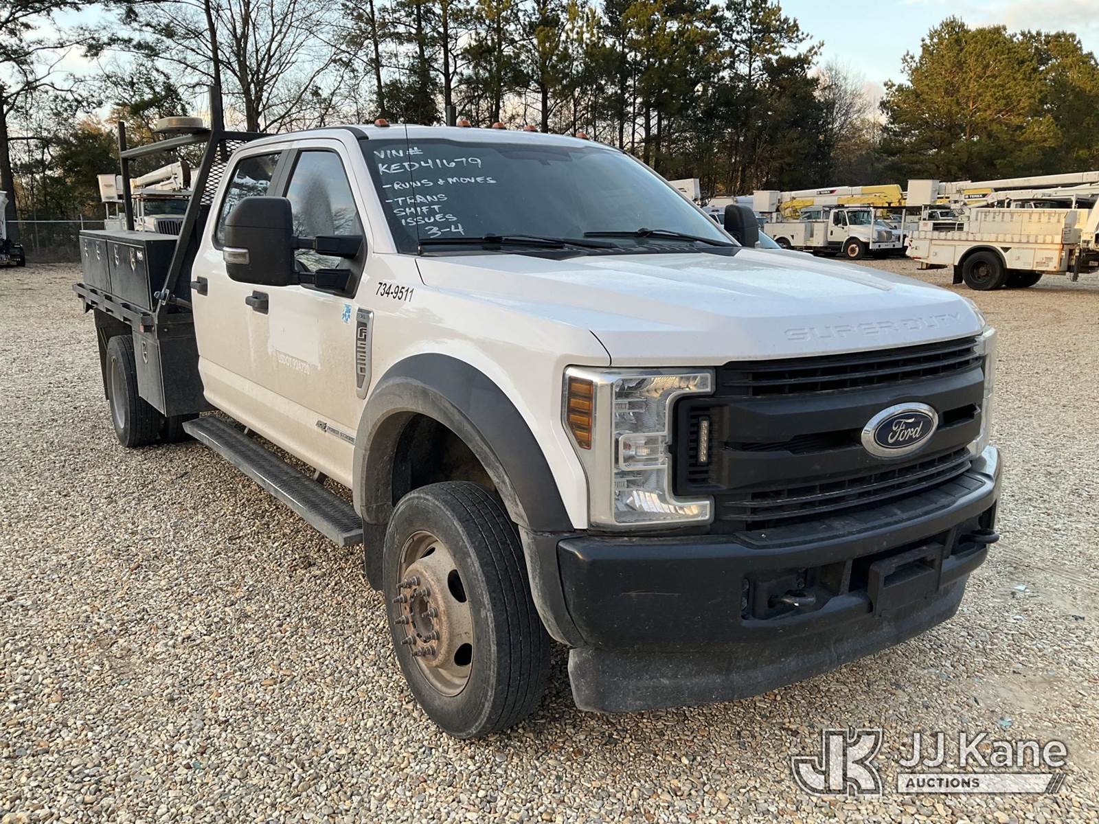 2019 Ford F550 4x4 Crew-Cab Flatbed/Service Truck, 6.7L V8 OHV 16V diesel, Auto, A/C, (199,991 miles) (Runs & Moves) (Seller States: Transmission Going Out) This is a Titled Item NOTE: This unit is being sold AS IS/WHERE IS via Timed Auction and is located in Robert, LA. Inspection & preview days for this unit are by appointment only; please contact us at contact@jjkane.com or 84-Go-JJKane for more details. License # LA AB-154 (Buyer is responsible for removal. Assistance by consignor or JJ Kane Auctions is not assured.)