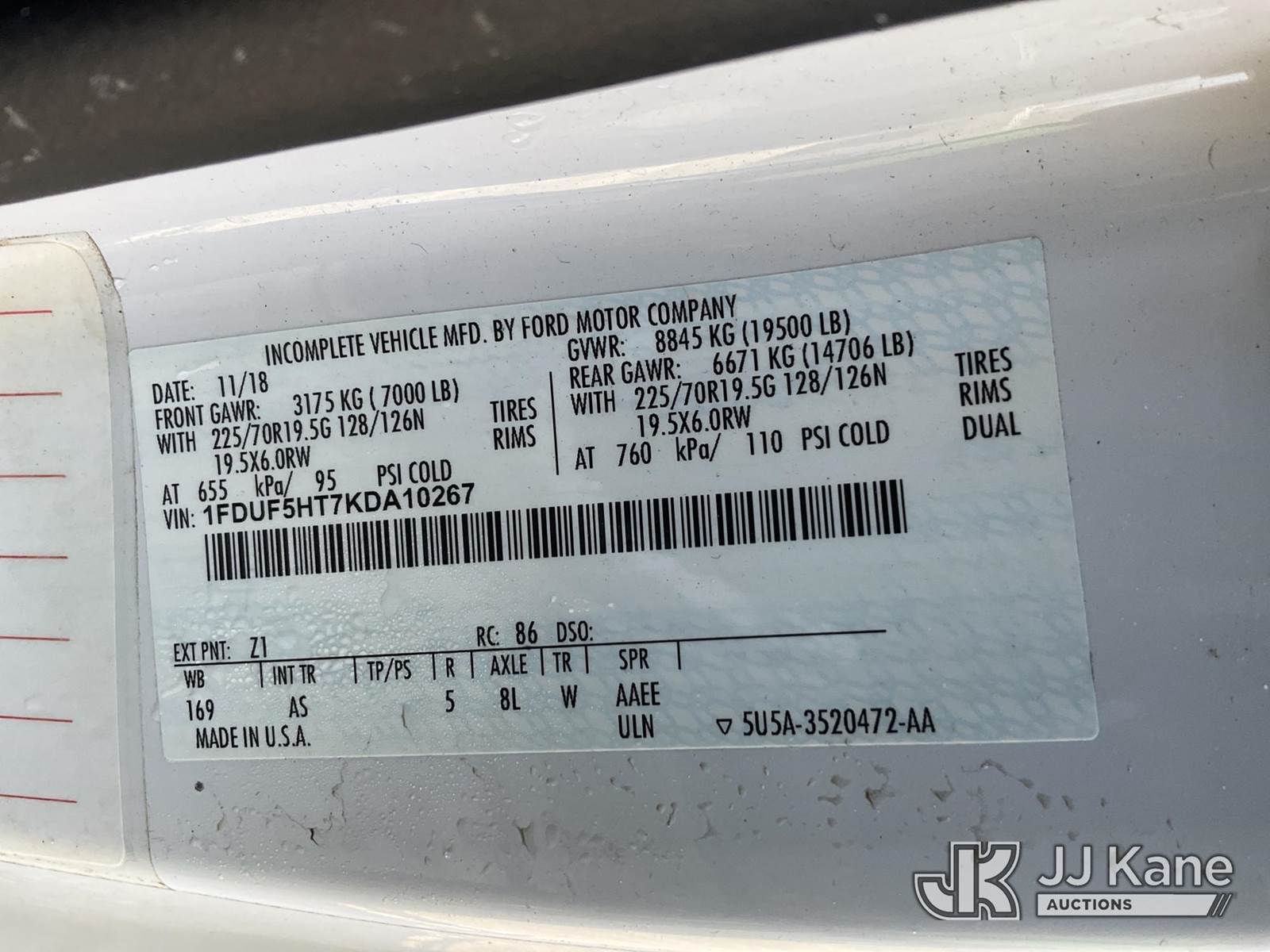 2019 Ford F550 4x4 Enclosed High-Top Service Truck, 6.7L V8 OHV 16V diesel, Auto, A/C, (37,073 miles) (Duke Unit) (Runs & Moves) This is a Titled Item NOTE: This unit is being sold AS IS/WHERE IS via Timed Auction and is located in Verona, KY. Inspection & preview days for this unit are the 2 business days prior to the first day of items closing for this auction, item is located at 2841 Verona-Mudlick Rd Ste B Verona, KY 41092 and hours of operations are 8a-4p. For pre-sale questions, please contact Office Staff @ (502) 612-5080. Auctioneer Michael Whitebread / License # 256617. (Buyer is responsible for removal. Assistance by consignor or JJ Kane Auctions is not assured.)