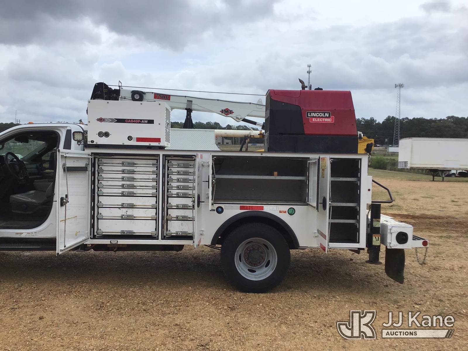 2019 Ford F550 4x4 Mechanics Service Truck, 6.7L V8 OHV 16V DIESEL Auto, A/C, with IMT 7500-22 material crane, Lincoln Ranger welder/generator & IMT CAS40P-AW air compressor, (173,278 miles) (Runs, Moves, Crane Operates, Welder Operates, Air Compressor Operates, Seat Torn, Engine Light On) (Reads 9,365 hours) This is a Titled Item NOTE: This unit is being sold AS IS/WHERE IS via Timed Auction and is located in Byram, MS. Inspection & preview days for this unit are the 2 business days prior to the first day of items closing for this auction, item is located at 6033 I-55 S / W Frontage Rd Byram, MS 39272 and hours of operations are 8a-4p. Pre-sale questions, please contact @ (659) 278-7786 (Buyer is responsible for removal. Assistance by consignor or JJ Kane Auctioneers is not assured.)