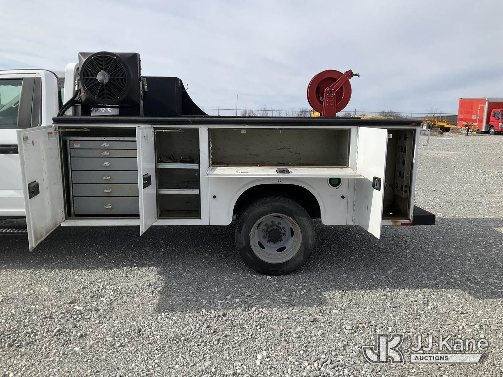 2019 Ford F550 Service Truck, 6.7L V8 OHV 16V DIESEL, Auto, RWD, A/C, with Boss Air Compressor, (149,095 miles) (Runs & Moves) (Body Damage) (Reads 7,825 hours) This is a Titled Item NOTE: This unit is being sold AS IS/WHERE IS via Timed Auction and is located in Hawk Point, MO. Inspection & preview days for this unit are the 2 business days prior to the first day of items closing for this auction, item is located at 25 State Highway A Hawk Point, MO 63349 and hours of operations are 8a-4p. For pre-sale questions, please contact Adam Stanek at (636) 295-1594. (Buyer is responsible for removal. Assistance by consignor or JJ Kane Auctions is not assured.)
