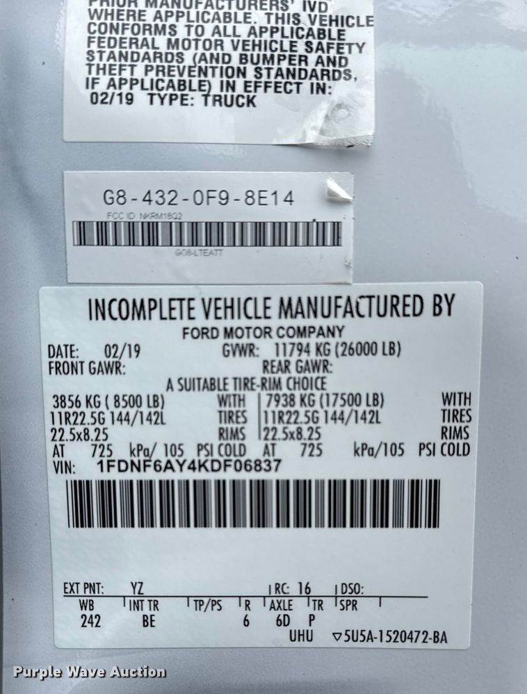 VIN: 1FDNF6AY4KDF06837