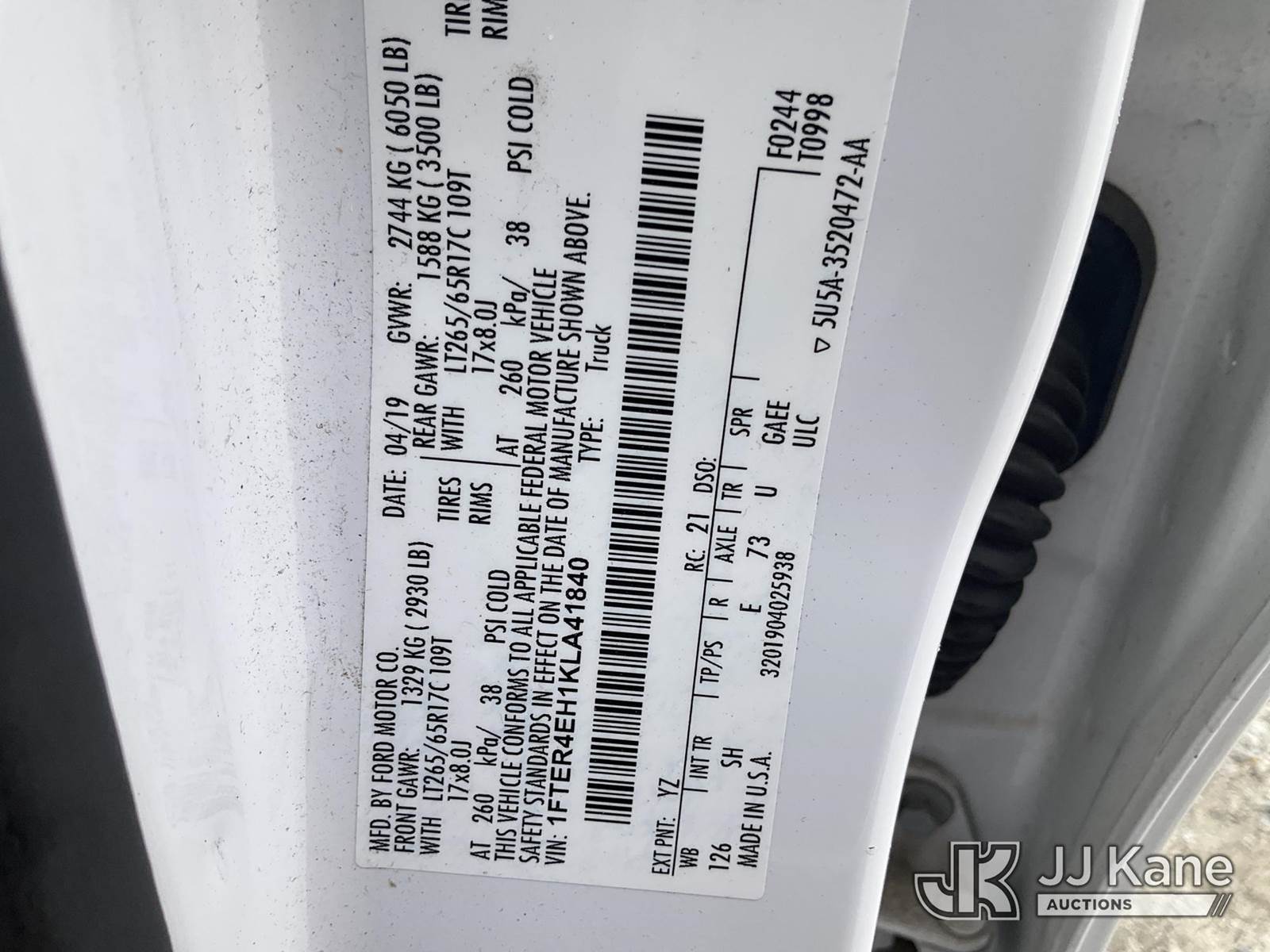 2019 Ford Ranger Crew-Cab Pickup Truck, 4-cyl gas, Auto, A/C, with bed cover, (54,996 miles) (Runs & Moves) (Body/Paint Damage) This is a Titled Item NOTE: This unit is being sold AS IS/WHERE IS via Timed Auction and is located in Villa Rica, GA. For more information & removal arrangements please contact Office Staff @ 470-590-8453. (Buyer is responsible for removal. Assistance by consignor or JJ Kane Auctioneers is not assured.)