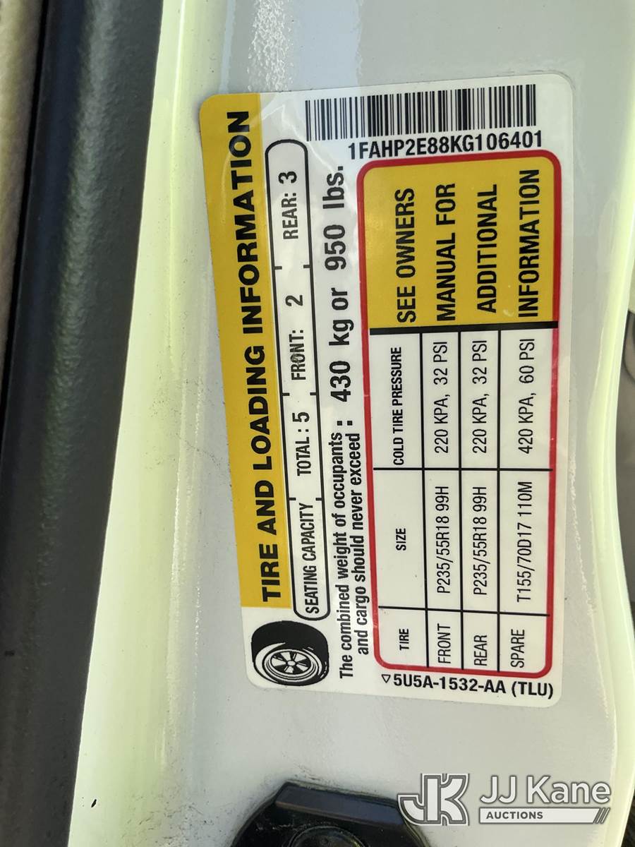2019 Ford Taurus SEL FWD 4-Door Sedan, 6-cyl gas, 6-Speed Automatic, FWD, GAS, A/C, (60,886 miles) (Run & Moves) This is a Titled Item NOTE: This unit is being sold AS IS/WHERE IS via Timed Auction and is located in South Beloit, IL. Inspection & preview days for this unit are the 2 business days prior to the first day of items closing for this auction, item is located at 14354 Dearborn Ave South Beloit, IL and hours of operations are 8a-4p. For pre-sale questions, please contact Derek Eklund at (608) 904-0618 or (derek.eklund@jjkane.com). (Buyer is responsible for removal. Assistance by consignor or JJ Kane Auctioneers is not assured.)