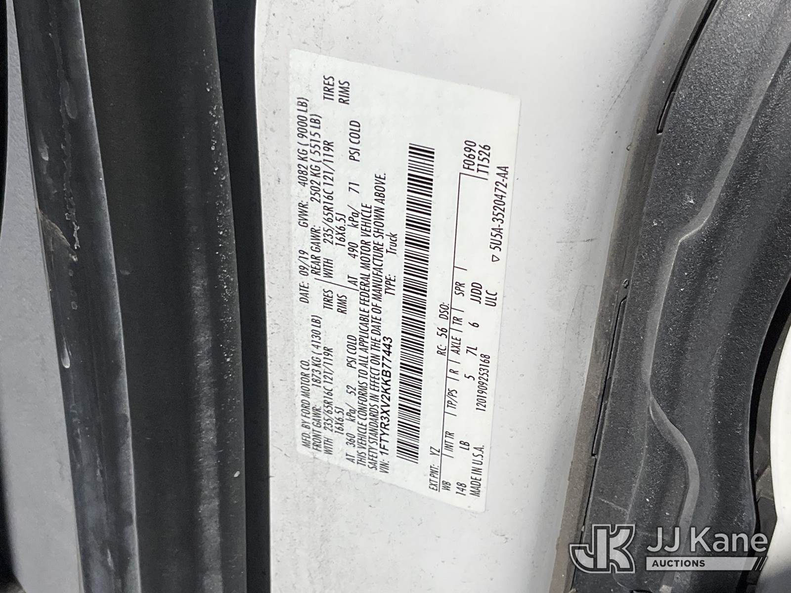 2019 Ford Transit-250 Passenger Van, 3.2L Auto, A/C, (227,143 miles) (Runs & Moves) (Engine Noise ) This is a Titled Item NOTE: This unit is being sold AS IS/WHERE IS via Timed Auction and is located in Salt Lake City, UT. Inspection & preview days for this unit are the 2 business days prior to the first day of items closing for this auction, item is located at 2353 N Redwood Rd Salt Lake City, UT 84116 and hours of operations are 8a-4p. Titles executed exactly as bidder registered. Ensure your name and/or business name and address in JJ Kane and/or ProxiBid is correct before bidding. For pre-sale questions, please contact Office Staff @ (801) 519-0123. (Buyer is responsible for removal. Assistance by consignor or JJ Kane Auctions is not assured.)