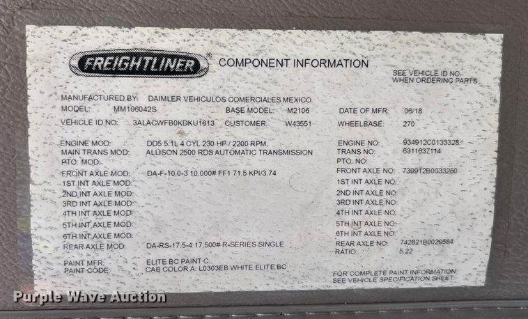 2019 Freightliner Business Class M2 box truck