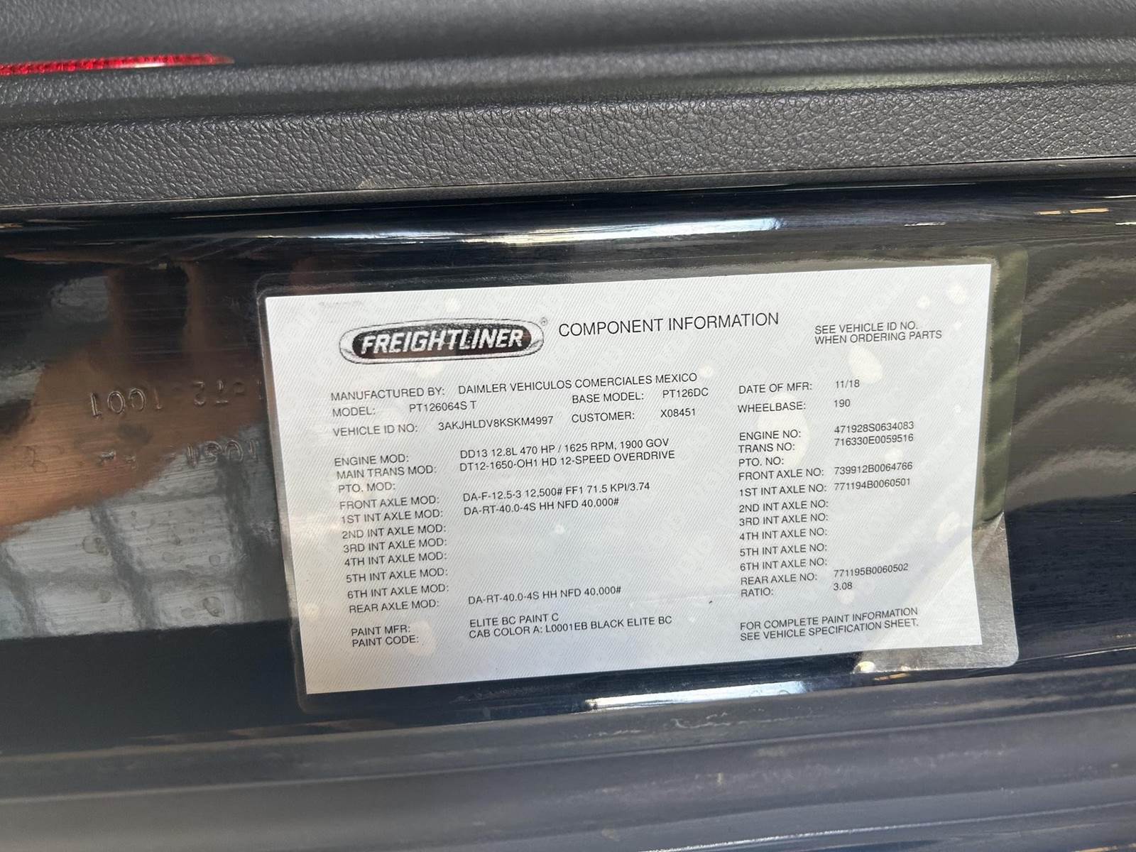 Engine: DETROIT DD13, 470 HP, Fuel Type: Diesel, Automatic Transmission, Drive: 6x4, Air Ride Suspension, Wheels: Aluminum, Wheel Base: 190, Tandem Rear Axles