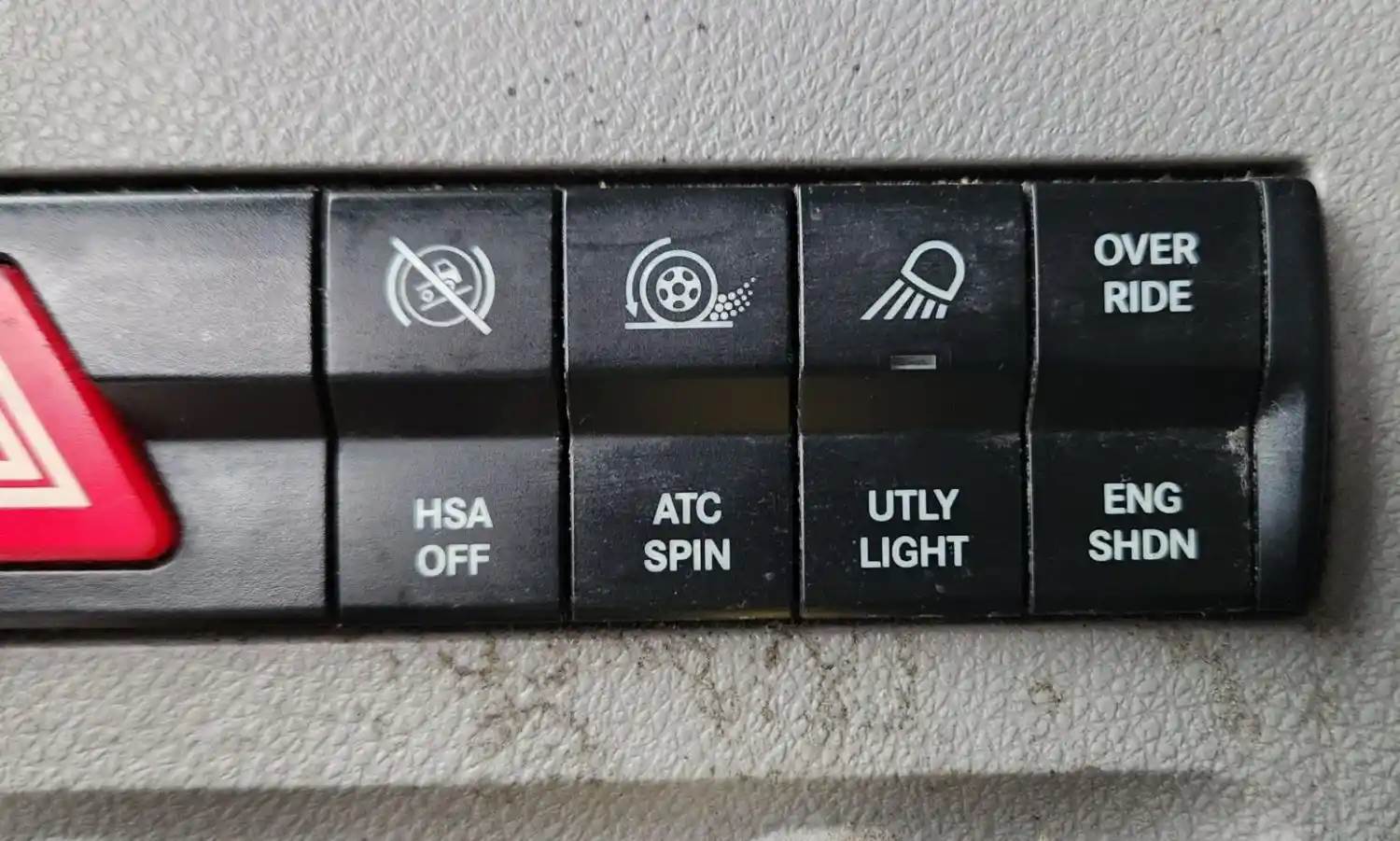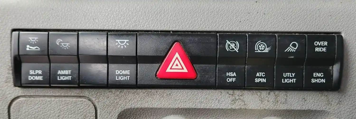 (Used) 2019 Freightliner Cascadia 126, MISCELLANEOUS DASH SWITCHES- Controls: Sleeper Dome, Ambt Light, Dome Light, Hazard Lights, HSA Off, Atc Spin, Utly Light, Override-Eng Shdn, Material: Plastic, Reference images for condition, For more information about this item, give us a call. We ship Worldwide! (CRG HEAVY TRUCK PARTS) 929 W PULASKI HWY ELKTON, MD 21921, Material: Plastic