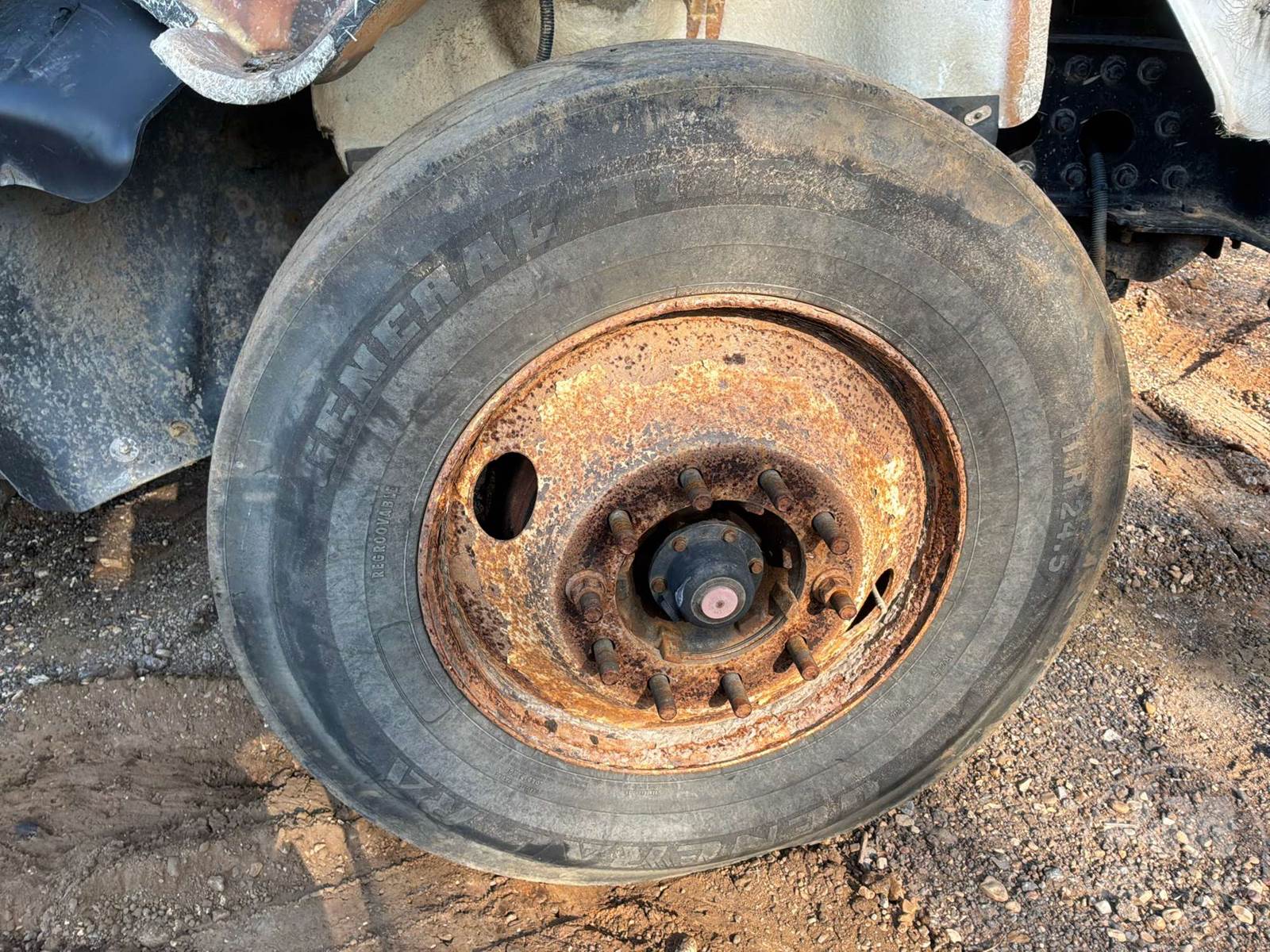 T/A TANDEM AXLE DAY CAB TRUCK TRACTOR, Â EATON FULLER, 10 SPEED, AIR RIDE SUSP, FRONTS 12K, REARS 20K, SINGLE FRAME, ALUM DISC WHEELS, TIRES 11R24.5, ODOMETER READS: CNV, ***INOP***