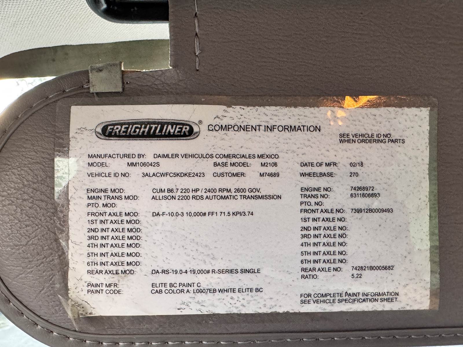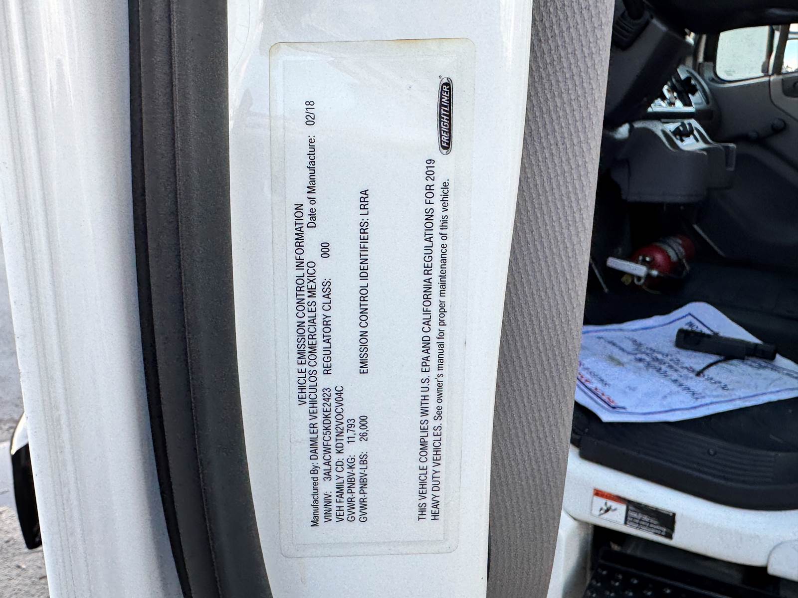 The 2019 Freightliner M2 106 is a medium-duty reefer truck designed for reliable cold-chain logistics. Powered by a Cummins ISB 6.7L diesel engine producing 220 horsepower and paired with an Allison 2200RDS 6-speed automatic transmission, it offers proven durability and smooth operation. With a GVWR of 26,000 lbs and a 270-inch wheelbase, it is a non-CDL unit that balances strength with accessibility for a wide range of operators