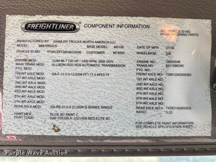 2019 Freightliner M2 106 dump truck