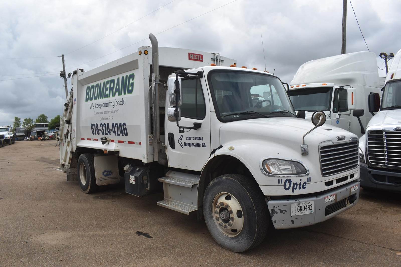 GOOD TRUCK, VERY CLEAN, NICE CAB, NO RUST, HEIL 20 YARD PACKER, AIR BRAKES, AIR SEAT, POWER MIRRORS!