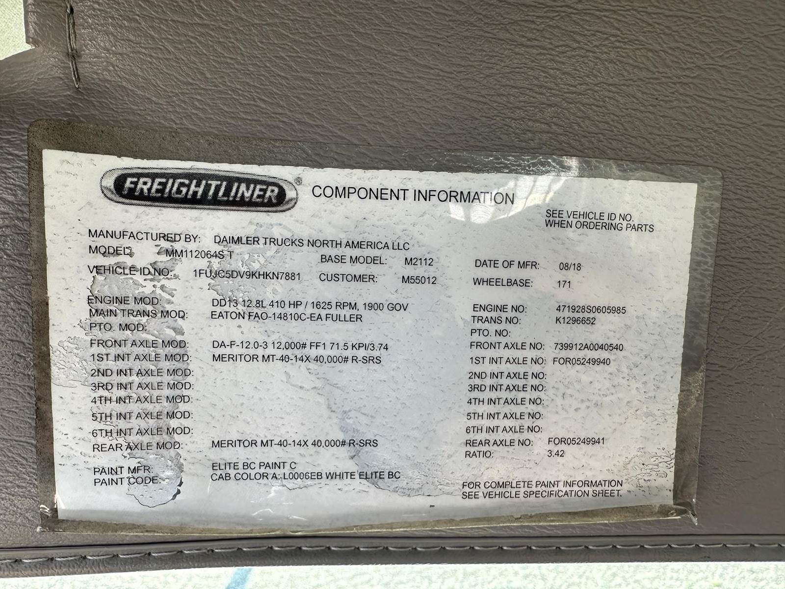 455hp PACCAR, 10 Speed Manual Trans, Aluminum Wheels, Wet Kit, 6 MO/50,000 Mile Engine and Aftertreatment warranty,
