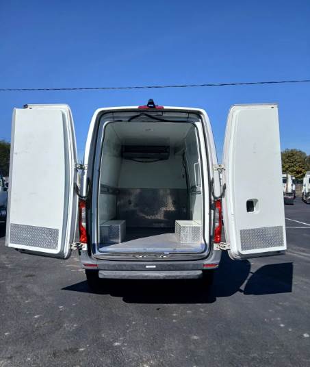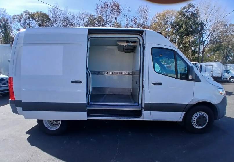 Offered for sale is a 2019 Freightliner Sprinter 3500 high roof refrigerated van equipped with a Carrier Integra 30S refrigeration system, a dependable and efficient cold-chain solution ideal for food distribution, pharmaceuticals, catering, and temperature-sensitive delivery operations. This Class 3 medium-duty refrigerated van is powered by a Mercedes-Benz BlueTEC 3.0L turbo diesel engine producing 188 horsepower and paired with a Mercedes-Benz 5G-Tronic 5-speed automatic transmission and a 4x2 drivetrain, delivering reliable performance and fuel efficiency for both urban and highway routes. The turbocharged 6-cylinder diesel engine operates on diesel fuel with a 24.5-gallon fuel capacity.