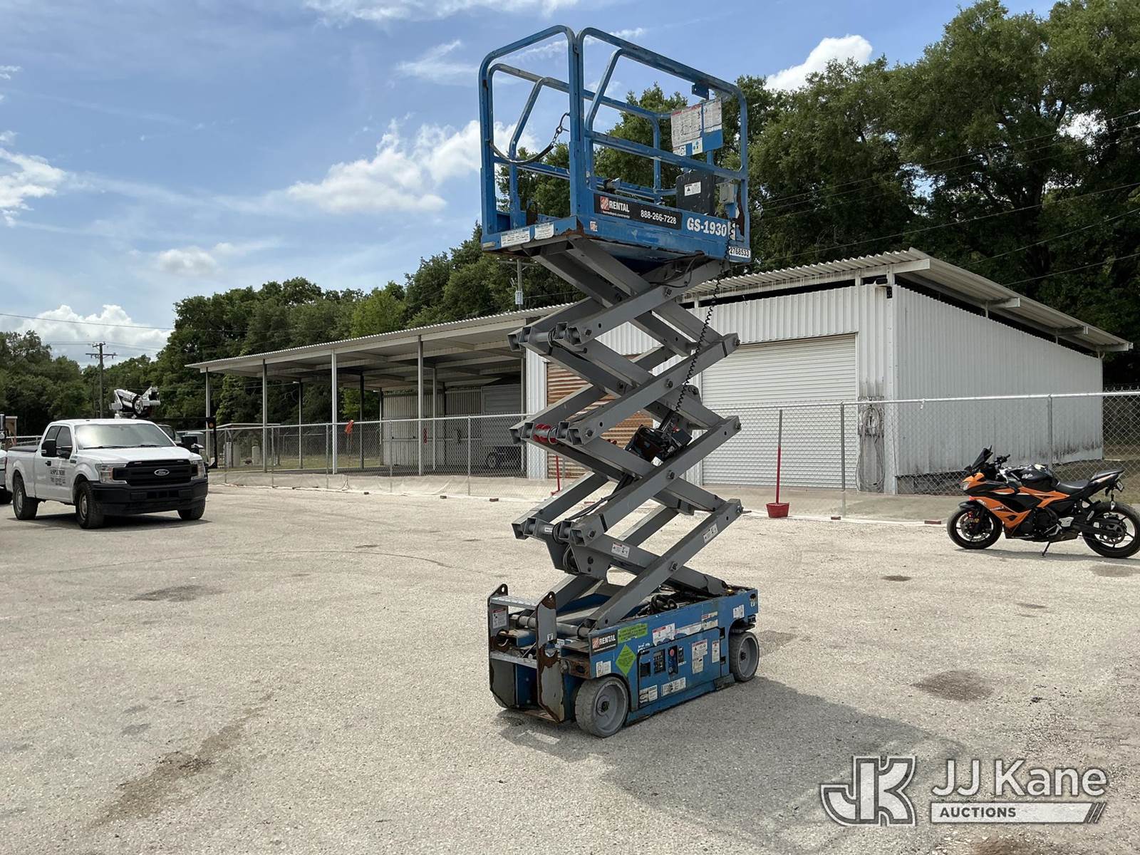 2019 Genie GS1930 Self-Propelled Scissor Lift, s/n GS30P-186878, electric, Hydrostatic, with 2019 MMDI, Inc. tilt trailer, S/N 5631F1414KM000970, Selling with Trailer ID 1601902. Invoice will be split 80/20 for FL Tax (Runs, Moves, Operates) (Reads 197 hours) NOTE: This unit is being sold AS IS/WHERE IS via Timed Auction and is located in Thonotosassa, FL. Inspection & preview days for this unit are the 2 business days prior to the first day of items closing for this auction, item is located at 11720 N US 301 Thonotosassa, Fl 33592 and hours of operations are 8a-4p. For pre-sale questions, please contact Office Staff @ (813) 986-2485. (Buyer is responsible for removal. Assistance by consignor or JJ Kane Auctions is not assured.)