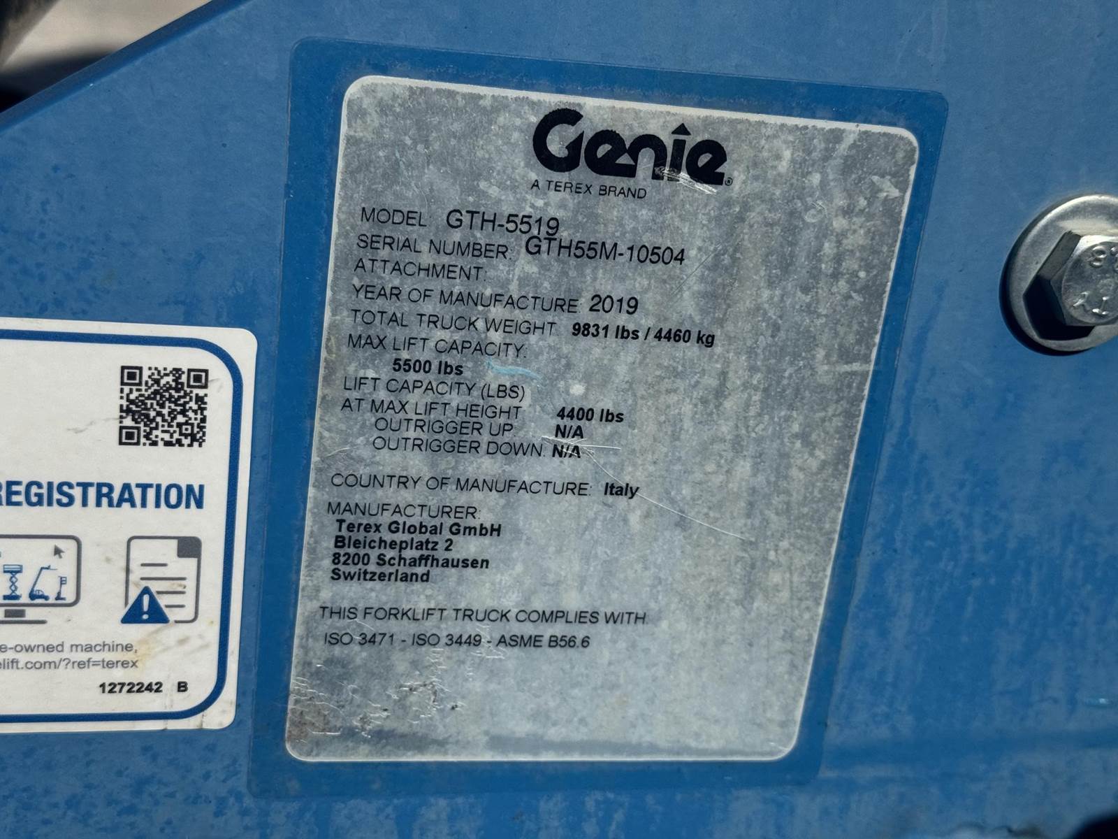 2019 GENIE GTH5519 with only 1,040 hours! 5500 LIFT CAP. 19 FT REACH.. RUNS AND OPERATES GREAT!!