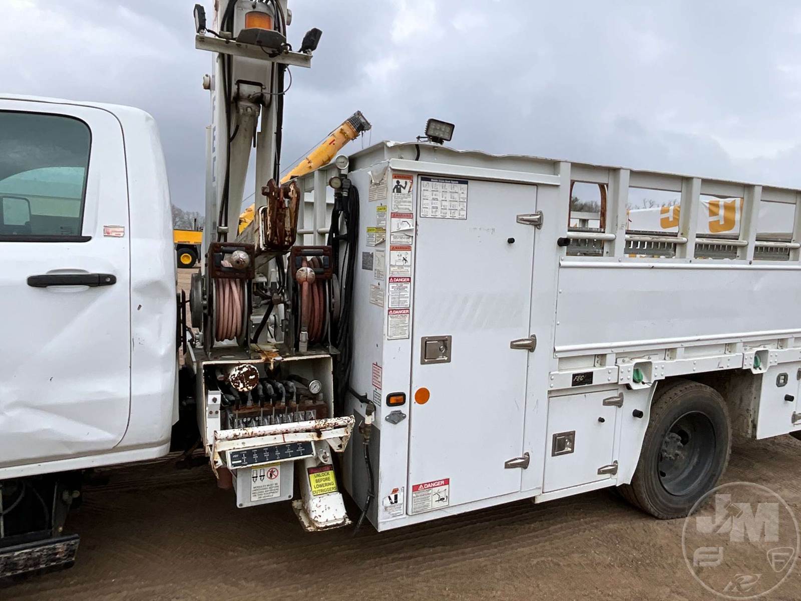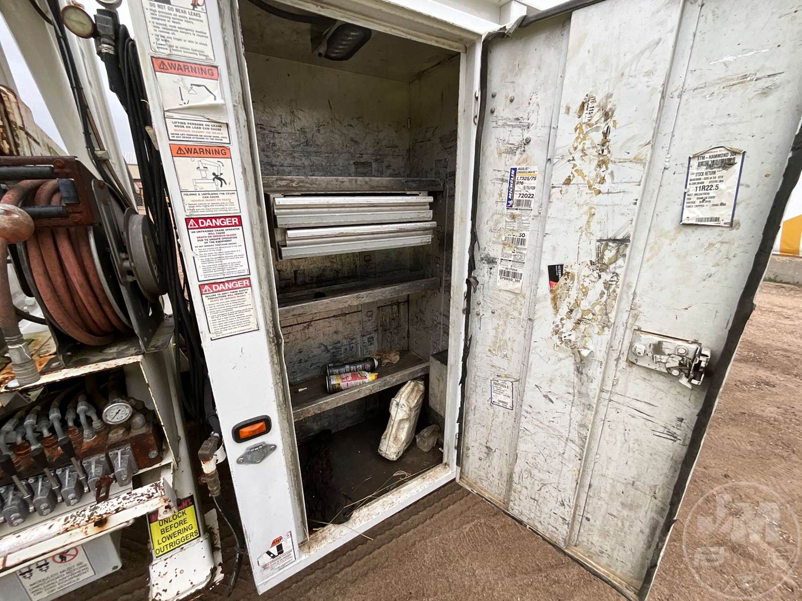S/A UTILITY TRUCK, DURAMAX 6.6L, ALLISON, AUTOMATIC, SPRING SUSPENSION, 189 " WB, 19500 LBS GVWR, 13', TIRE SERVICE BODY, TIRE BOOM, CRANE REMOTE CORDLESS, HYDRAULIC AIR COMPRESSOR, DUAL HOSE REELS, LIFT GATE, HYDRAULIC OUTRIGGERS, STEEL DISC WHEELS, 245/70R19.5, ODOMETER READS: 141779